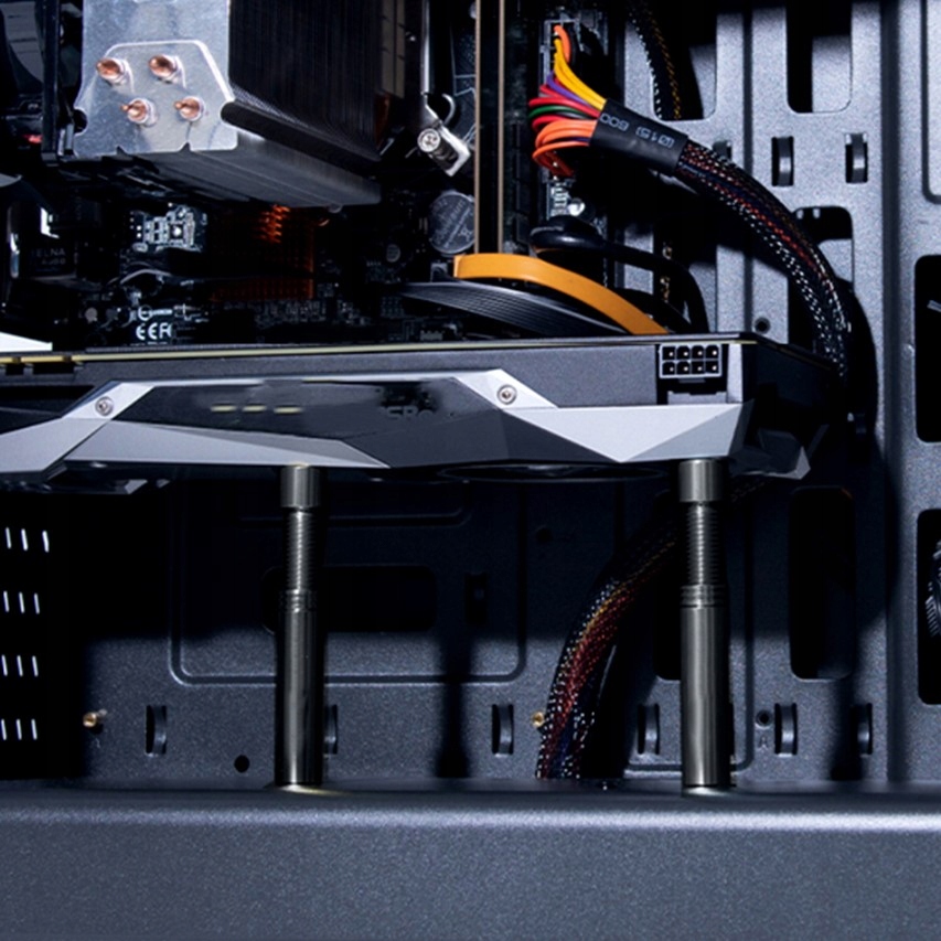 Держатель видеокарты Jonsbo VC 20 можно разместить в любом месте корпуса. Он состоит из устойчивой основы с магнитным и нескользящим дном, которое удерживает видеокарту устойчиво и не прогибается под ее весом.