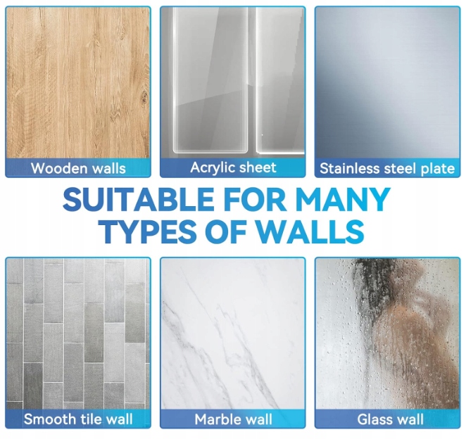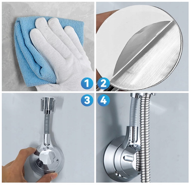 - Легкая установка: держатель головки душа может быть установлен за 10 секунд. Просто снимите фольгу и прикрепите ручку к стене, без винтов, гвозди! Нет необходимости просверлить отверстия в стенах или плитках. Подождите 2 - 5 часов или дольше будет сильнее. Лучше всего подходит для твердых и гладких поверхностей, таких как стекло, керамика, металлические поверхности, плитки и т. Д. Универсальный диаметр: 2 см