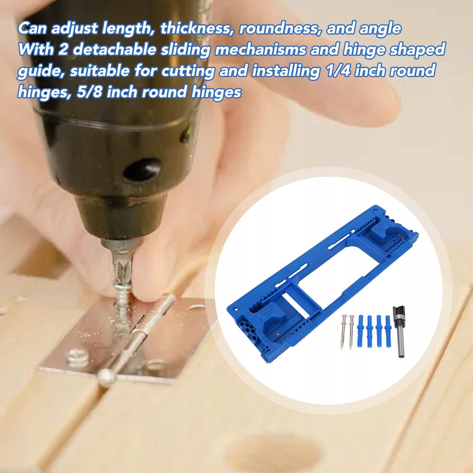 2. [Регулируемая конструкция] Этот шаблон шарнирного фрезерного станка имеет 2 съемных скользящих механизма и направляющую формы шарнира, подходящую для резки и установки круглого сечения 5/8 дюйма.