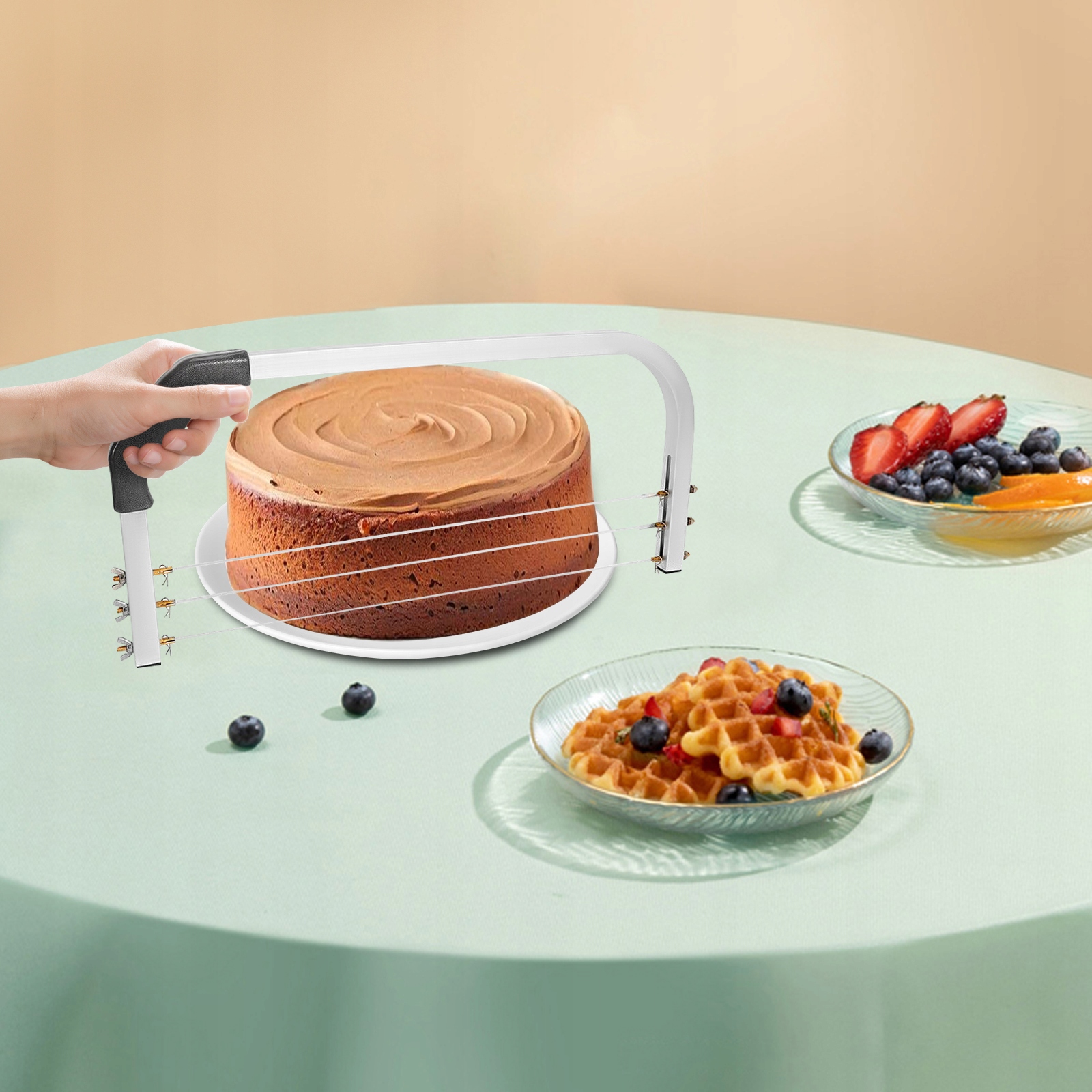 - Отличная производительность: 3-проводная лезвия из нержавеющей стали продукта имеет зубчатый край и может легко сократить тесто до желаемого размера, создавая даже слои теста для точного украшения, лучшего вкуса и профессиональной презентации. Провод этого продукта может быть отрегулирован в диапазоне от 0,39-3,54 дюйма, которые можно отрегулировать в зависимости от толщины теста, которое нужно разрезать. Кроме того, 1-2 проволочных пил также могут быть удалены, если это необходимо, чтобы удовлетворить потребности различных слоев резки теста.