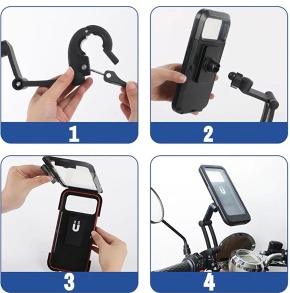 Наш велосипедный держатель имеет специально разработанное водонепроницаемое корпус, который эффективно защищает ваш телефон от влаги, дождя и пыли.
