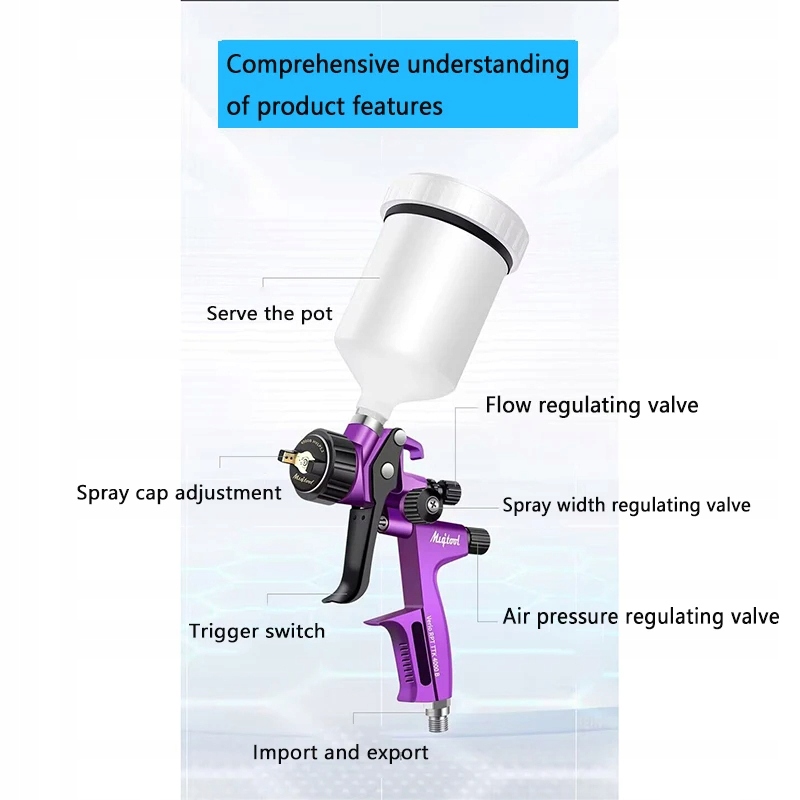REGULOWANY PISTOLET LAKIERNICZY DO MALOWANIA 600ml HVLP 1.3mm ZESTAW 4000B