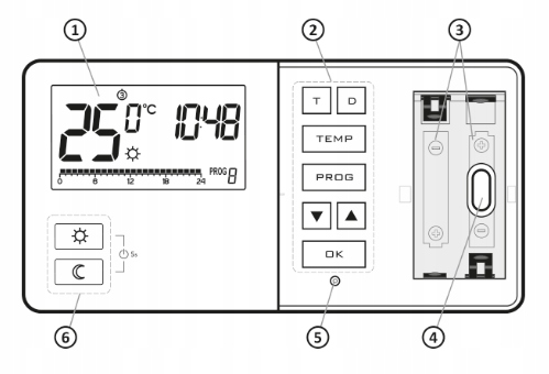 - 6 - Кнопки выбора режима (день, ночь)