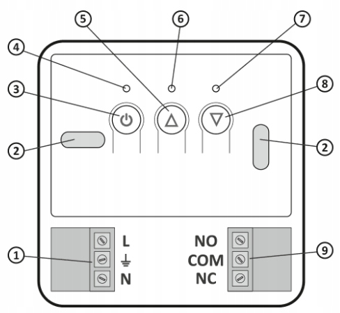 - 9 - Разъемные клеммы (сухие контакты COM–NC, COM–NO)