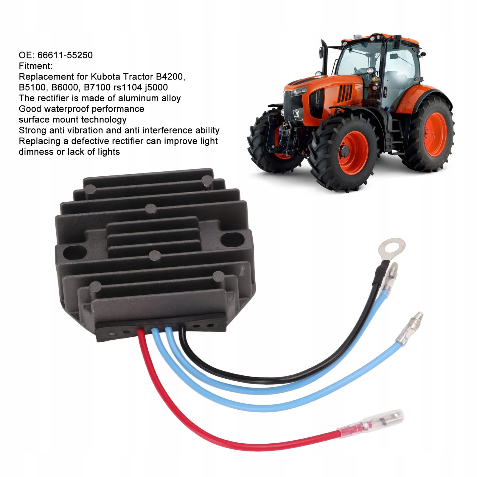 1. Применимость: Специально разработанный регулятор напряжения, замена для трактора NaNaKubotaB4200, B5100, B6000, B7100 rs1104 j5000, артикул 66611-55250.