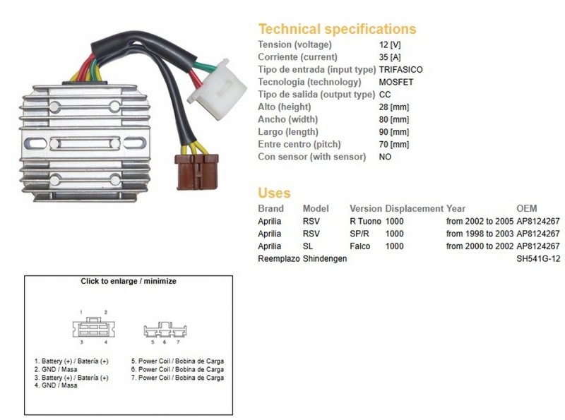 Регулятор напряжения Aprilia RSV 1000p/R 98-03; SL 1000 Falco 00-02