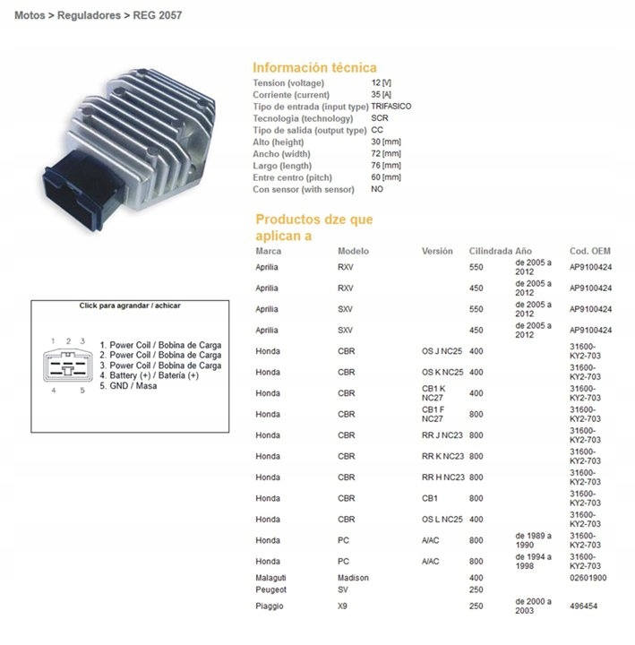РЕГУЛЯТОР НАПРЯЖЕНИЯ DZE APRILIA RXV/SXS 450, 550, HONDA PC800
