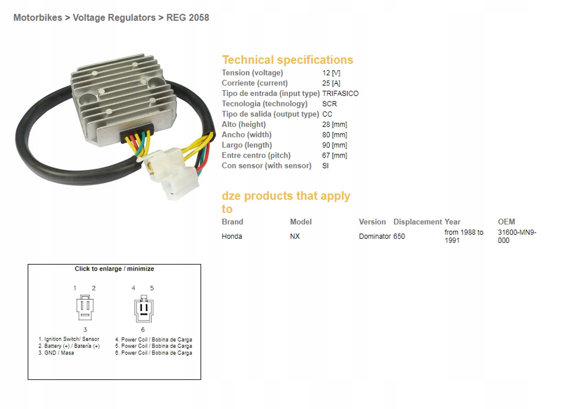 РЕГУЛЯТОР НАПРЯЖЕНИЯ DZE HONDA NX 650 DOM
