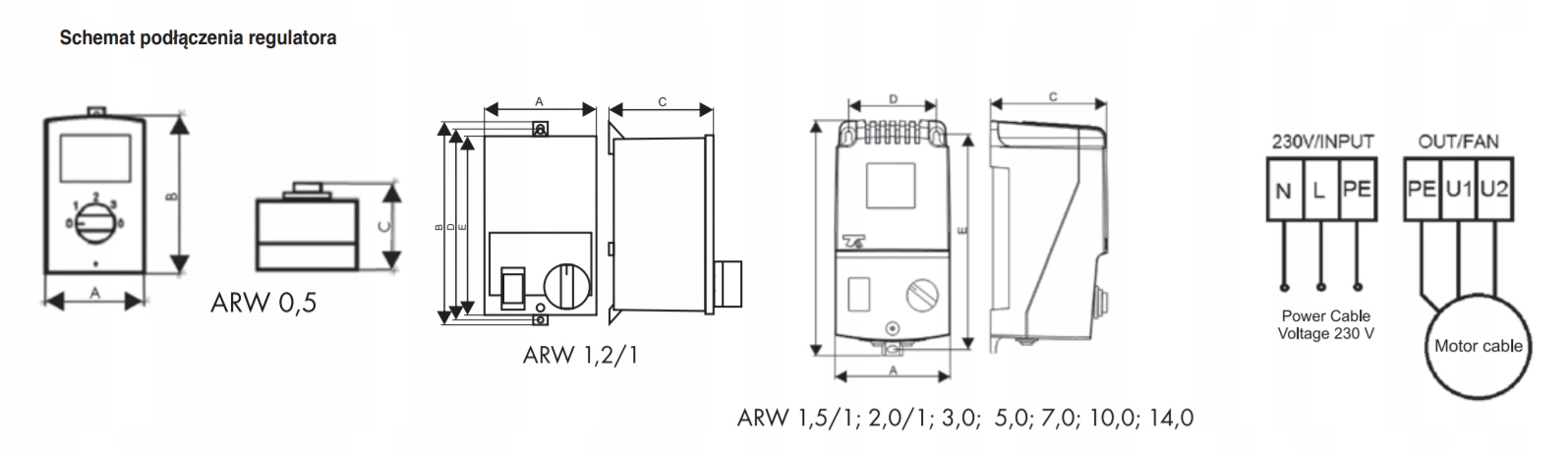 Трансформатор ARW Регуляторы для регулировки скорости вращения однофазных вентиляторов, контролируемого напряжением. Установлено в промышленной вентиляции или установках отопления. Ручка, расположенная на панели корпуса, используется для пяти -скоростной настройки вращения. Оснащен независимой сигнализацией переключателя при подсветке. Реализация во втором классе. Степень защиты IP30 или IP54. Максимальная температура окружающей среды 40 ° C. Нагревание класс изоляции B (130 ° C). Исполнение в соответствии с EN 61558-2-1.