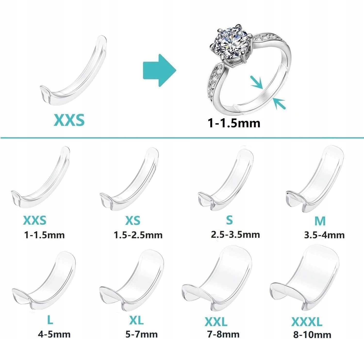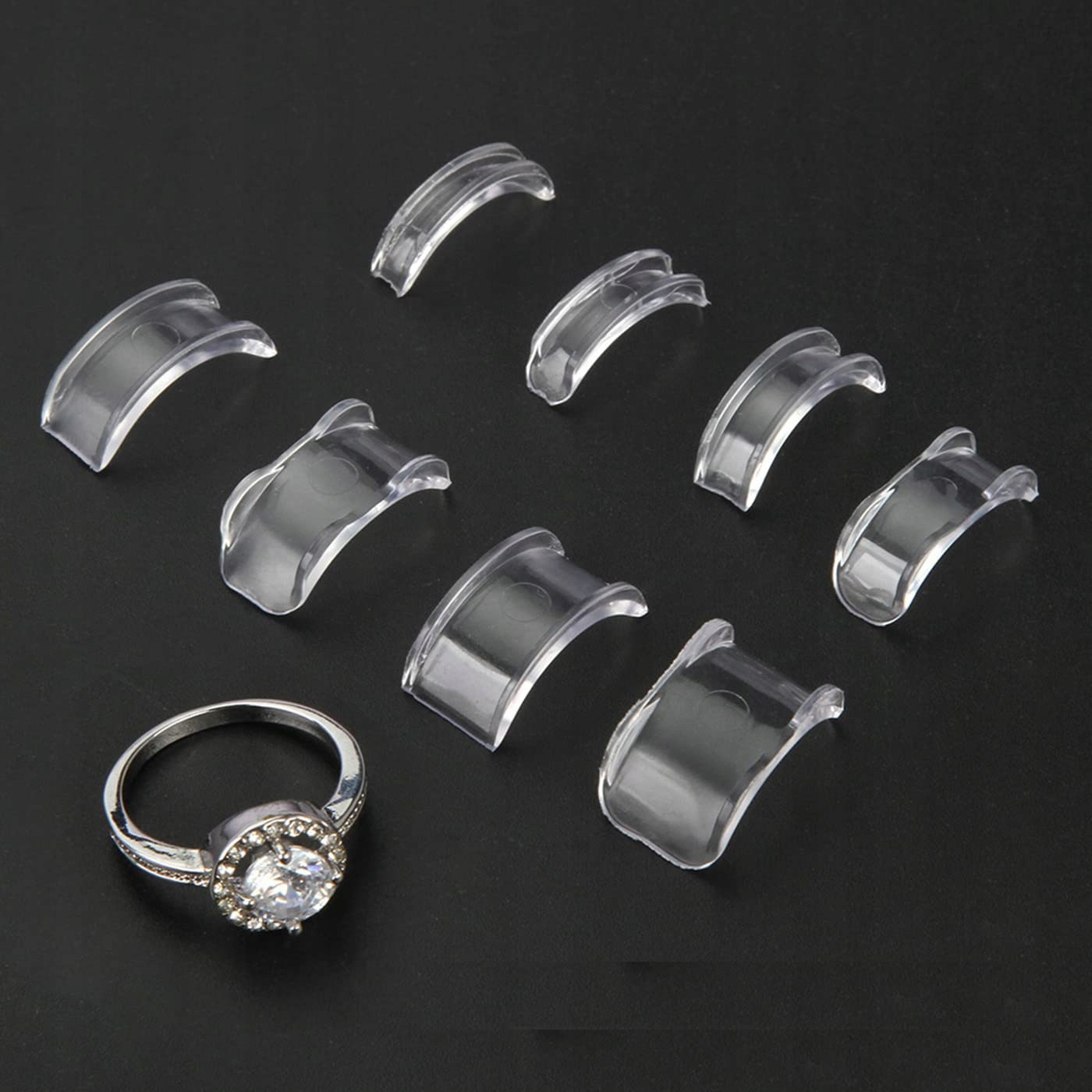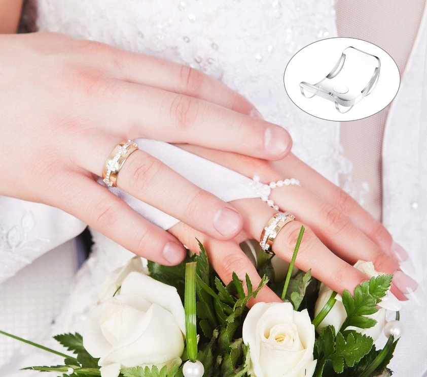 Прозрачный регулятор размера кольца позволяет быстро и легко уменьшить окружность кольца или обручального кольца и подогнать его по размеру пальца.
