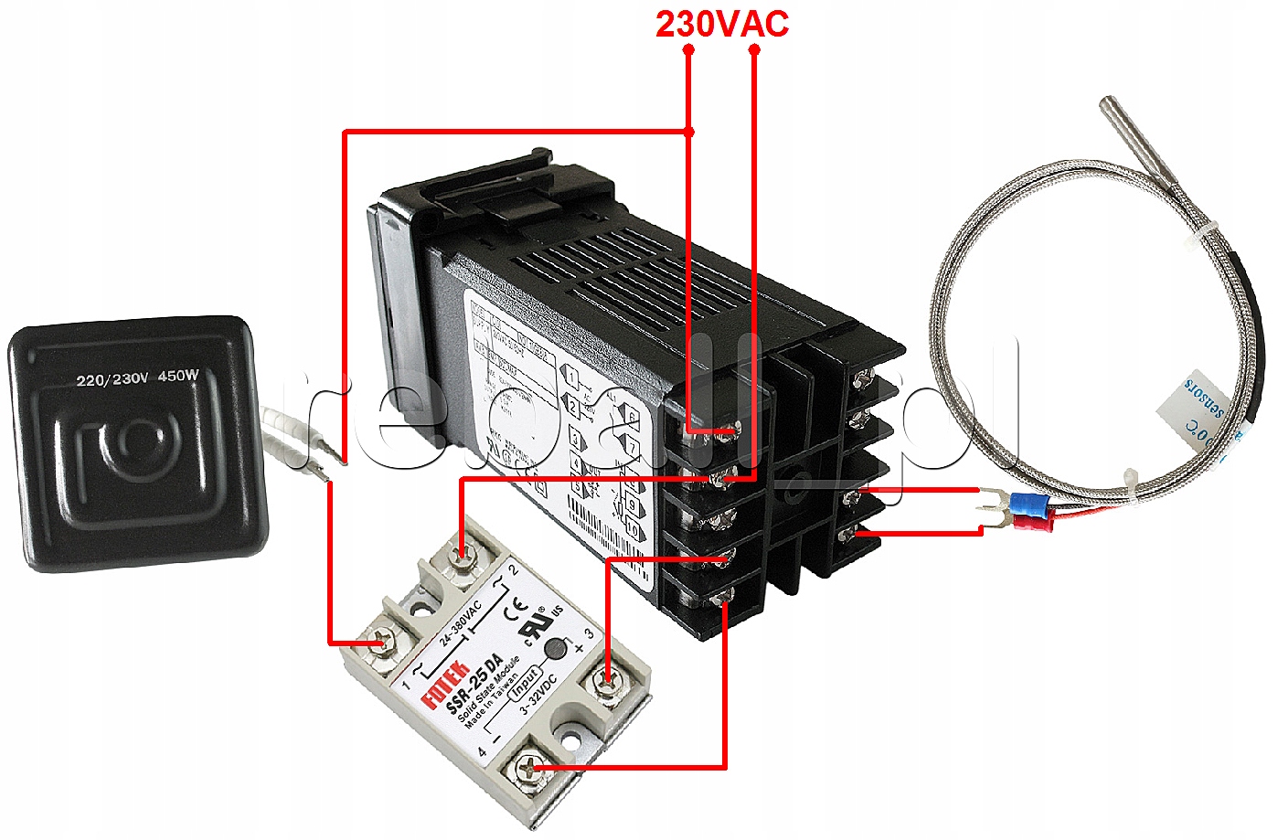 РЕГУЛЯТОР ТЕМПЕРАТУРЫ ДАТЧИК ТИПА К 1,5м + SSR 25DA ДЛЯ КОПТИЛЬНОСТИ РЫБЫ