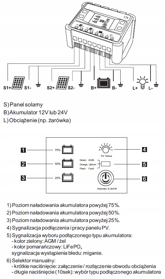 - Поддерживаемый тип аккумулятора: AGM/Gel/LiFePO