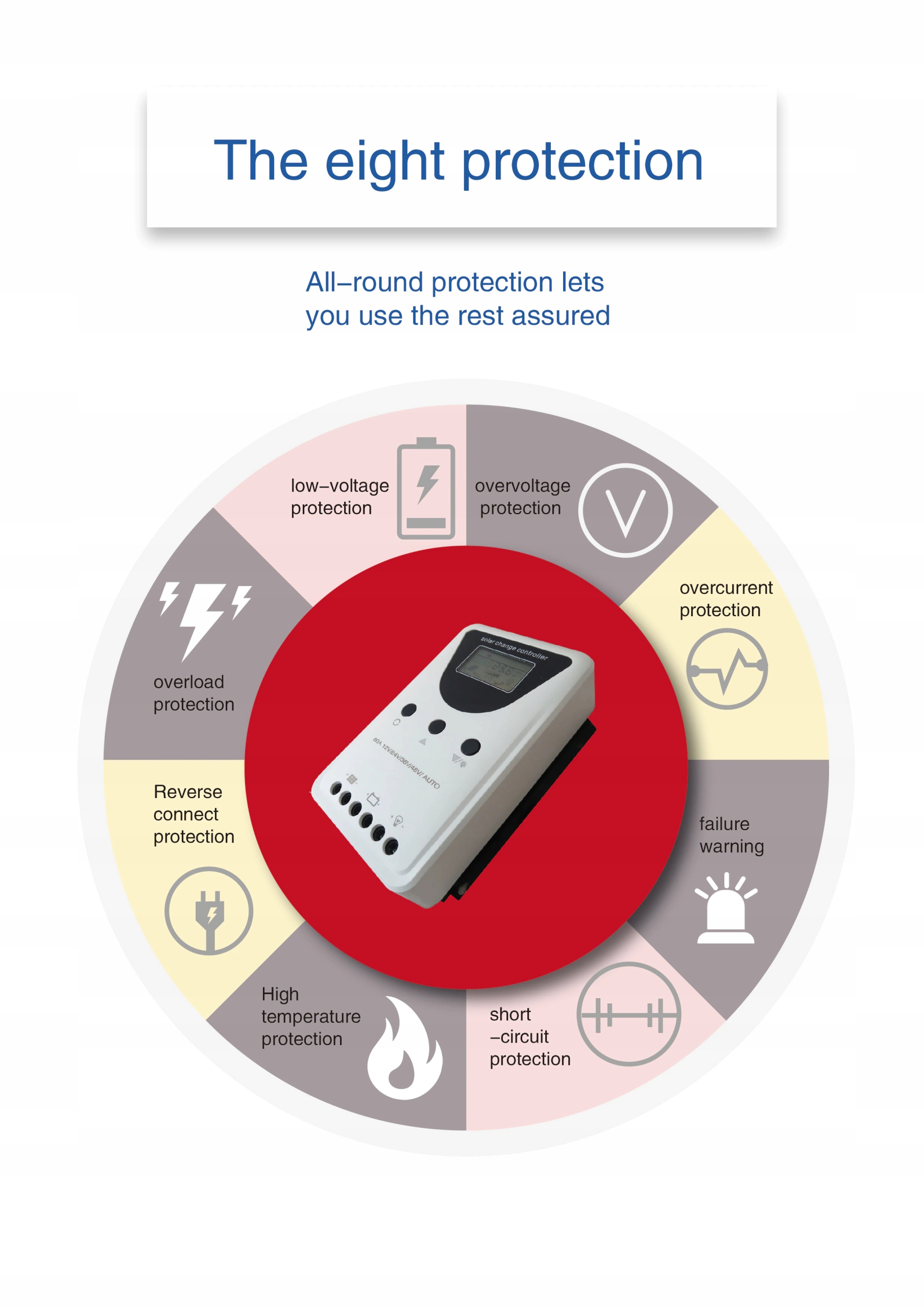 Новый, чрезвычайно эффективный ШИМ-контроллер с очень широким рабочим диапазоном. Единственный такой мощный регулятор, поддерживающий множество типов аккумуляторов.