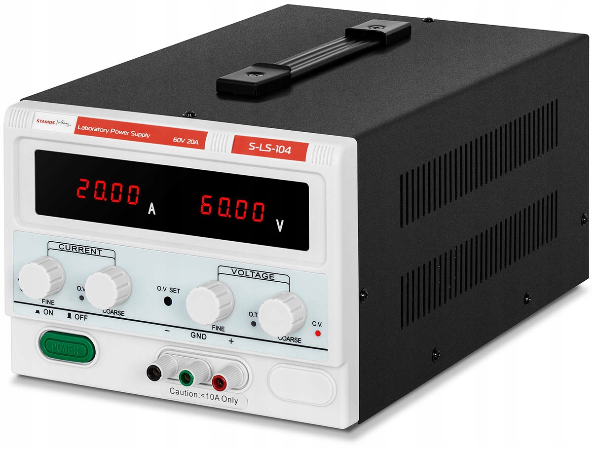 - Название по каталогу: Лабораторный источник питания - 0-60 В - 0-20 А Постоянный ток — 1200 Вт — 4 ячейки памяти — 4-значный светодиодный дисплей