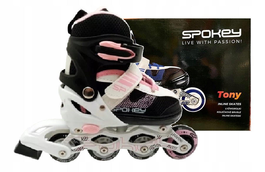 НОВЫЕ детские регулируемые роликовые коньки Spokey TONY — отличная идея, чтобы познакомить вашего ребенка с уникальным миром катания на коньках! Эффектная графика и цвета понравятся самым маленьким. Это лучший выбор, который имеет возможность регулировать размер. Благодаря этому роликовые коньки растут вместе с ребенком, и вам не придется каждые несколько месяцев покупать новую пару.