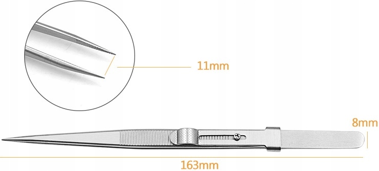 ПРЯМОЙ МЕТАЛЛИЧЕСКИЙ ПИНЦЕТ С РЕГУЛИРУЕМЫМ ЗАМКОМ 163 ММ