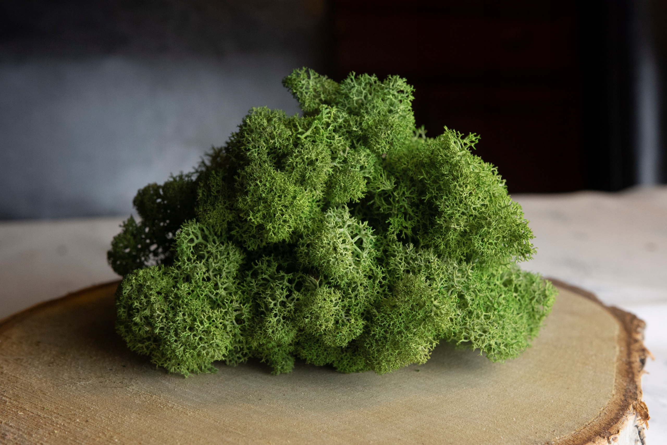 - Влажность воздуха, при которой мох всегда будет нежным на ощупь, составляет 40% - 60%. Хорошей новостью является то, что в большинстве жилых помещений влажность составляет около 50%. Если влажность воздуха слишком низкая, мох может стать жестким, а если влажность воздуха слишком высокая, на мхе может конденсироваться вода, в результате чего краситель растворяется в воде и остаются следы, которые можно смыть.