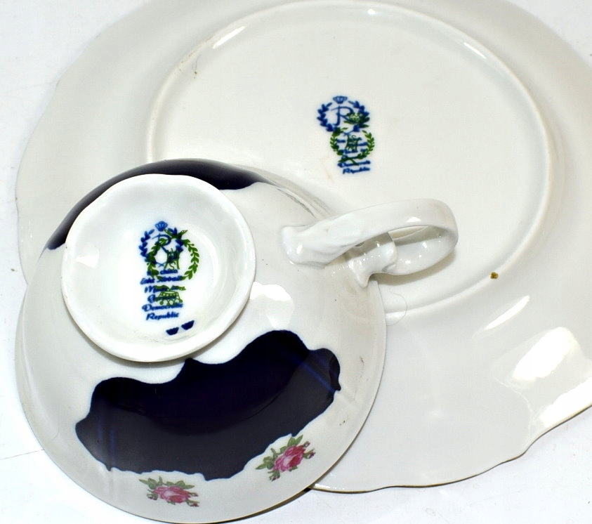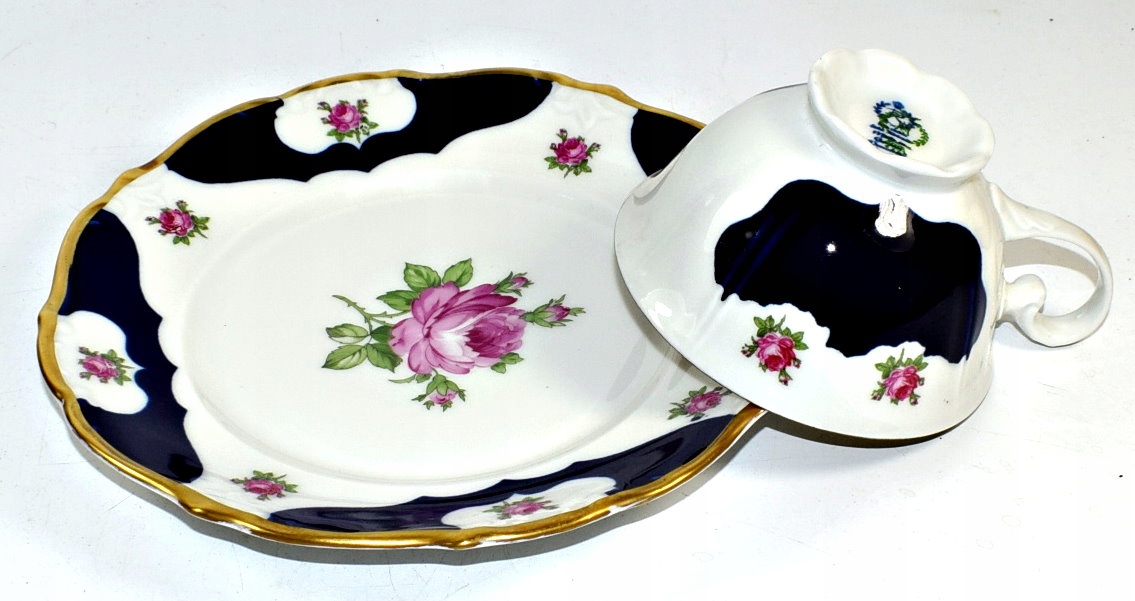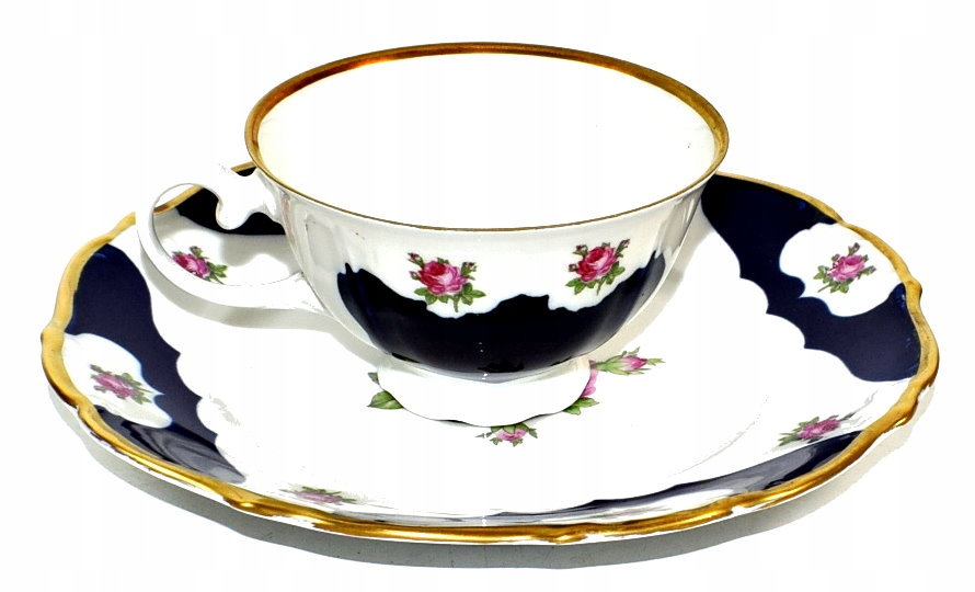 Рейхенбах - красивая кобальтовая чашка в розах и позолота