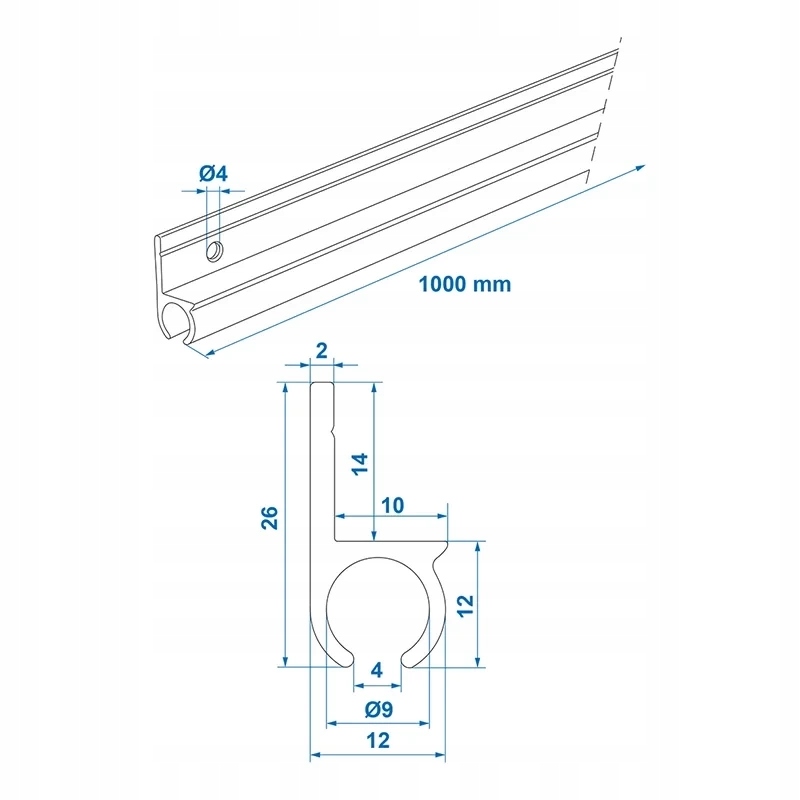 Алюминиевая рельса для KEDRA 180 ST 100 x 2,6 см
