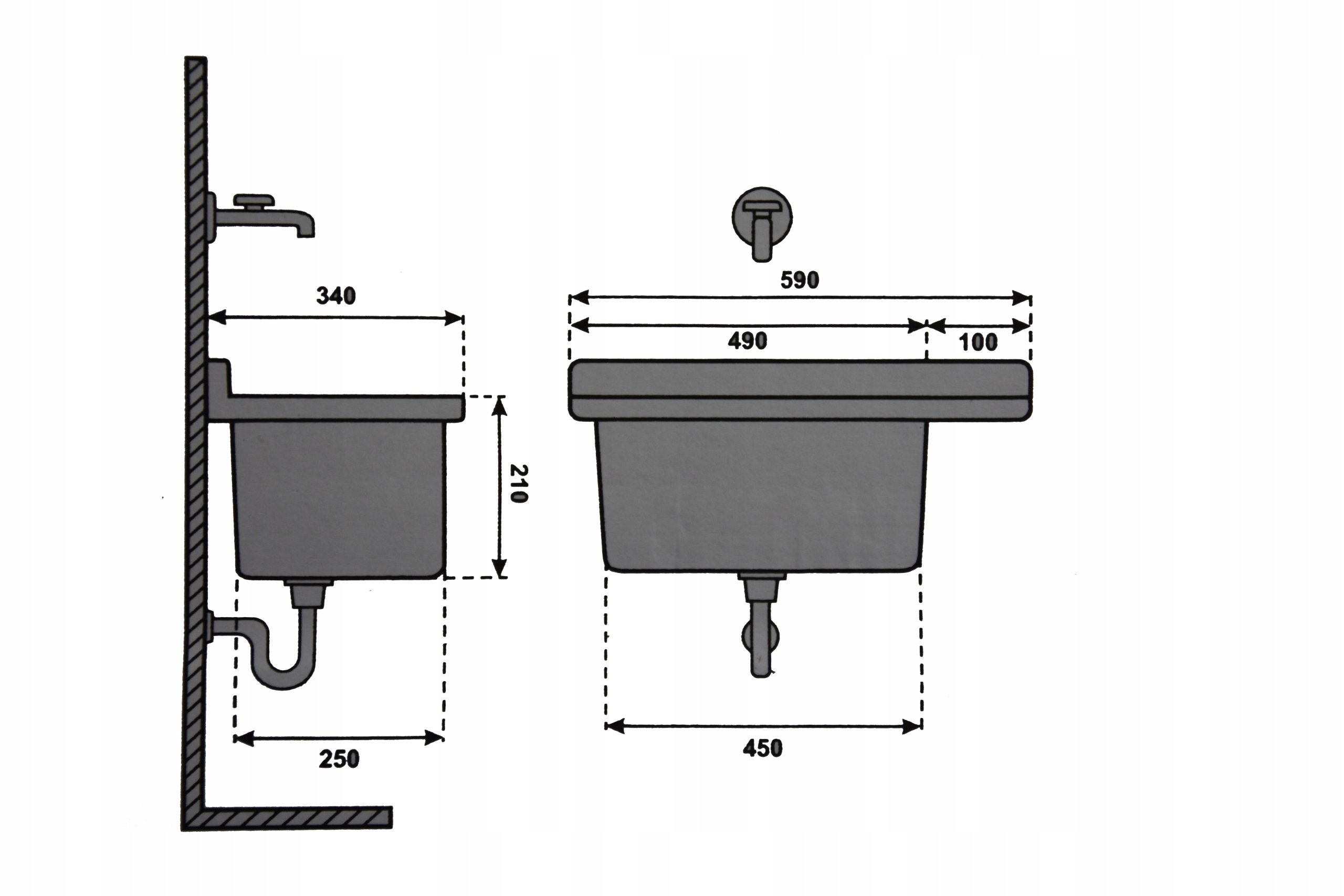 ВКЛЮЧАЕТ СИФОН С ПЕРЕЛИВОМ И КОМПЛЕКТ ДЛЯ НАСТЕННОГО МОНТАЖА
