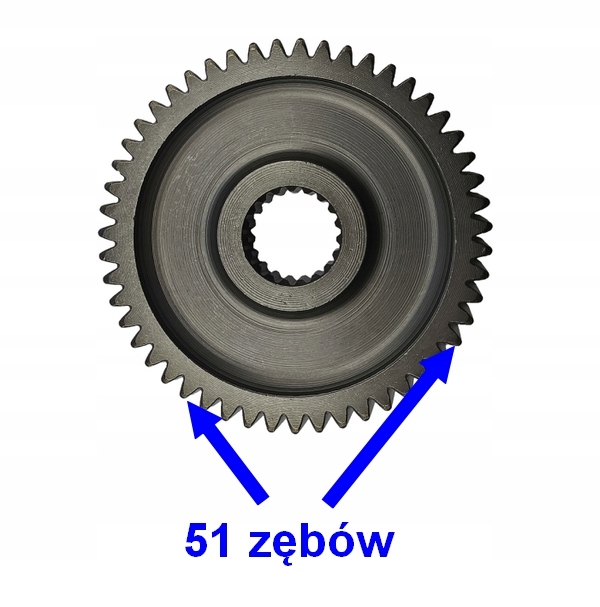 * Выходной вал (так называемая короткая ось колеса): 51 зуб