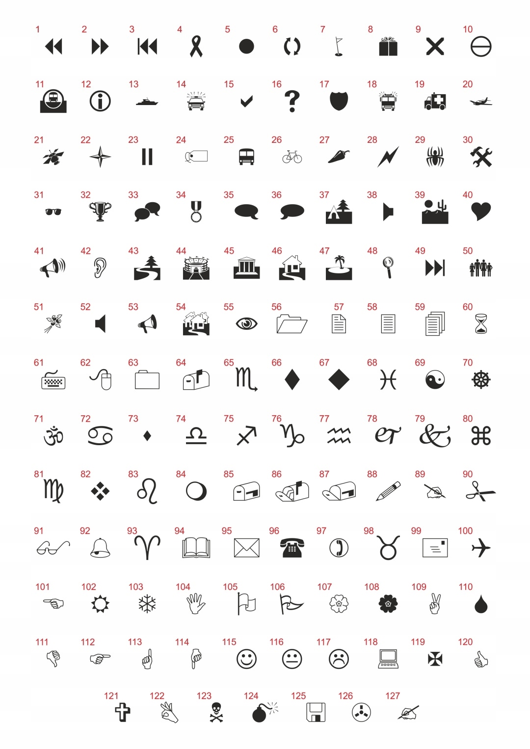В вашем дизайне можно использовать следующие символы и шрифты.