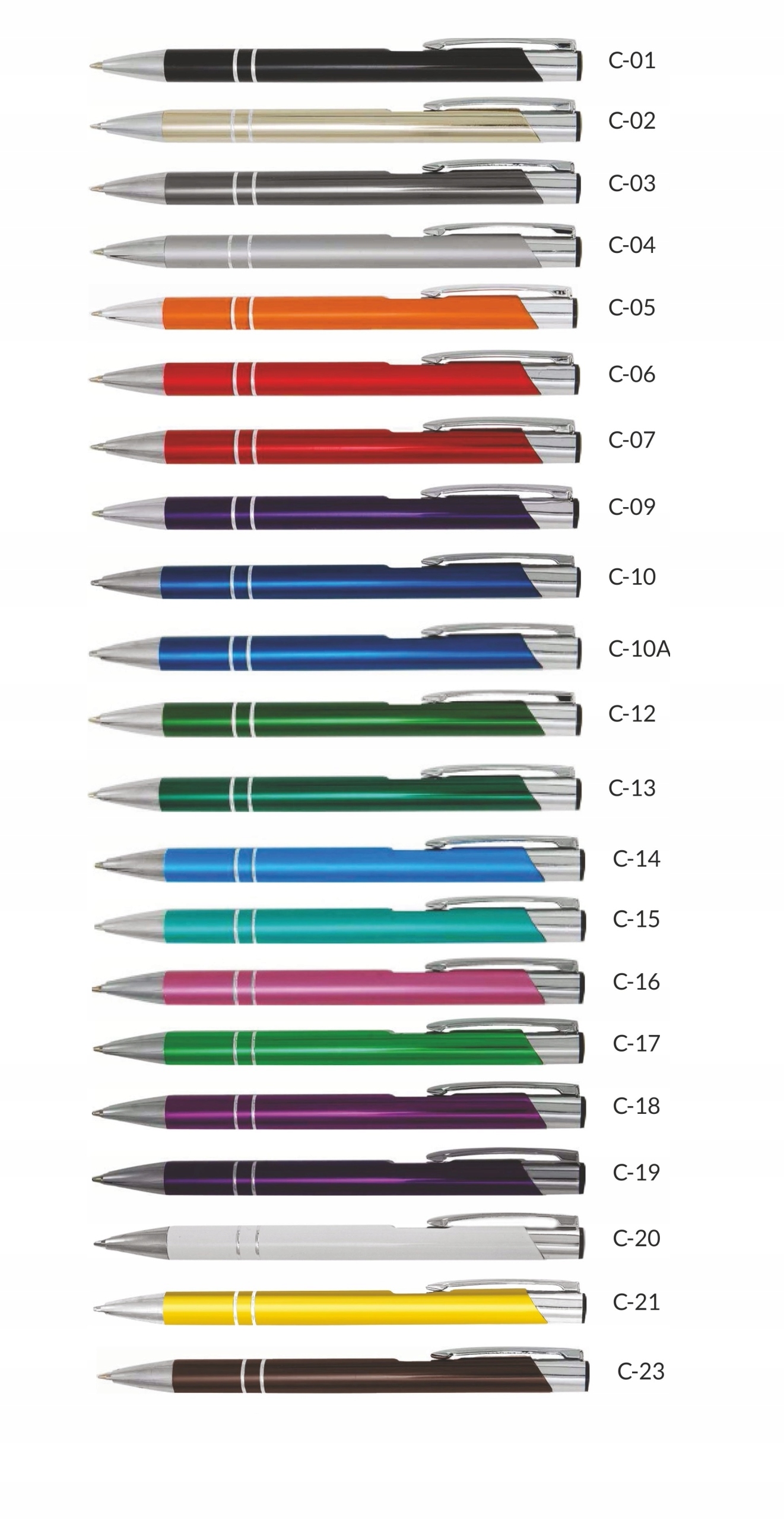 Мы маркируем ручки методом гравировки. Гравировка — это метод перманентной маркировки, который включает «выжигание» верхнего слоя цвета ручки, обнажая его внутренний слой. ВНИМАНИЕ! Мы не имеем никакого влияния на окончательный цвет маркировки. Гравировка обычно белая. Исключением являются цвета С-20 (белый) и С-21 (желтый) — здесь маркировка серебристого цвета.