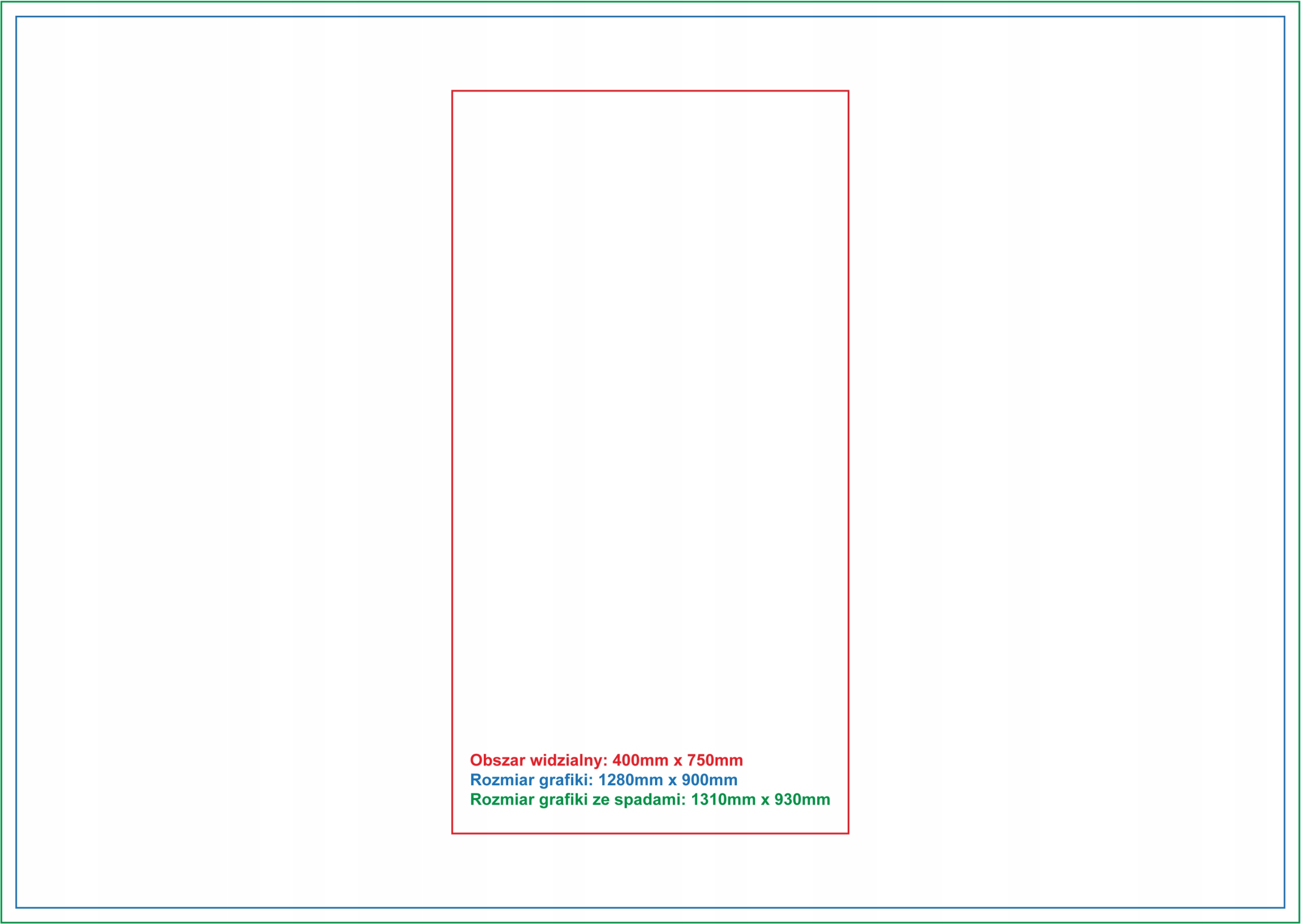 - Цвета: CMYK, размеры дизайна с обрезом 1310 x 930 мм, графические размеры 1280 x 900 мм, видимая область 400 x 750 мм