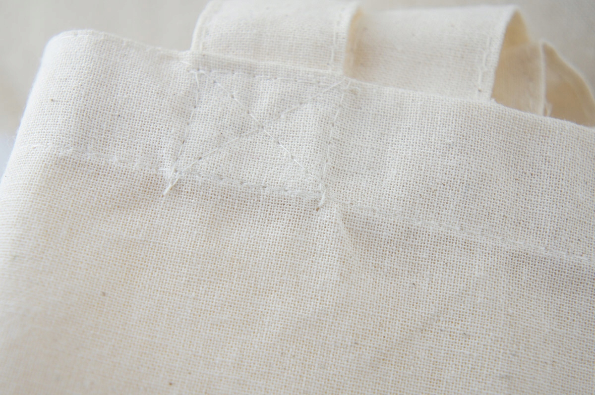 Хлопковые сумки сшиты оверлочной строчкой. Благодаря этому сумка становится значительно прочнее и не имеет излишне торчащих ниток.