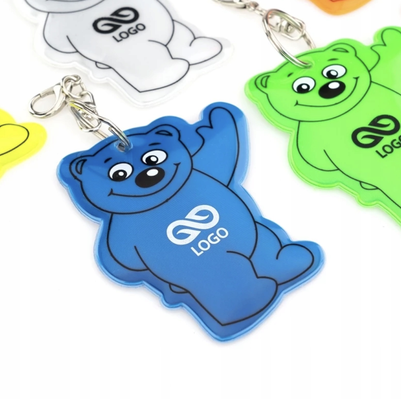 РЕКЛАМНЫЕ БРЕЛОЧКИ с принтом, светоотражающий брелок, РЕЗИНОВЫЙ МИШКА, 100 шт.
