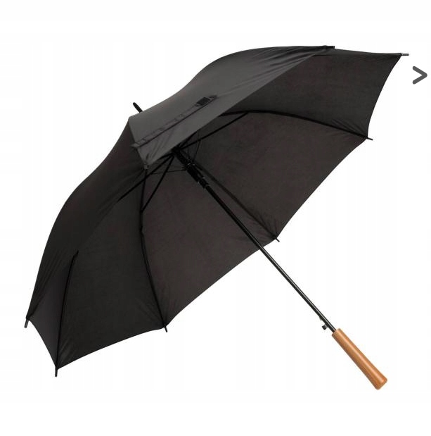 Автоматический зонт с металлическим тростником и рельсами и пластиковыми шипами, соответствующие цвету, ручка с деревянной отделкой , Полиэфирная обшивка, закрытие липучки.