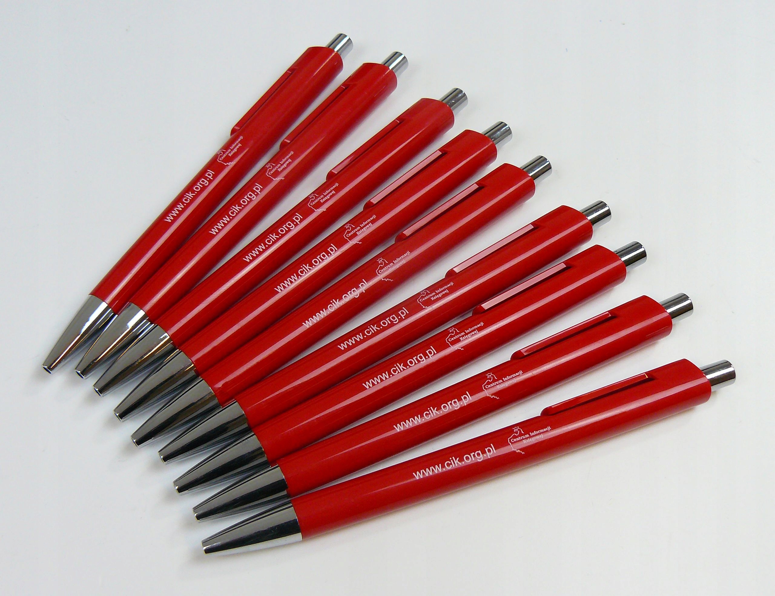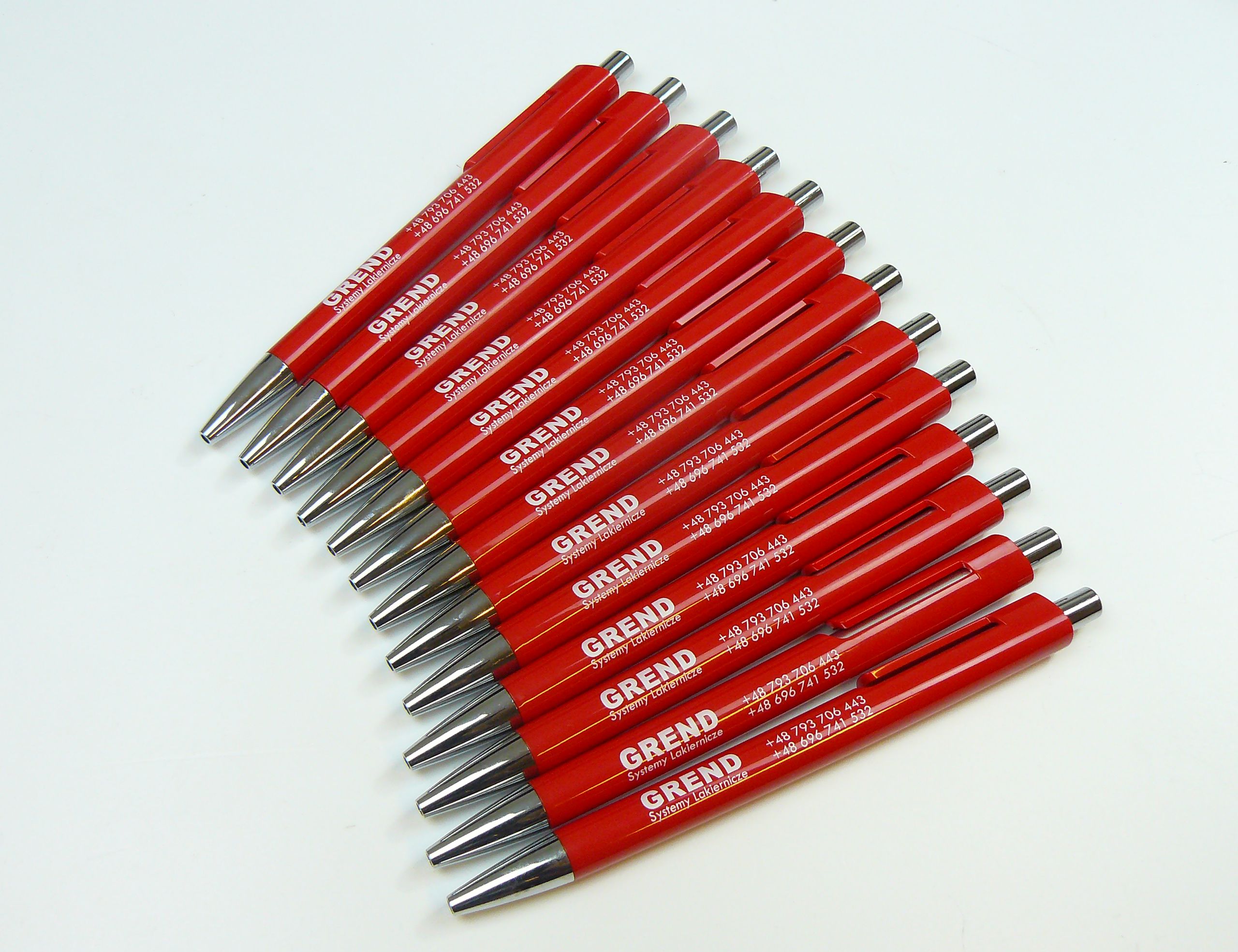 На ручках мы можем распечатать любой логотип или надпись. Наши продукты отличаются высоким качеством, эстетикой и великолепным цветовым воспроизведением. Кроме того, печать долговечна и устойчива ко всем видам повреждений, таких как царапины, истирание графики или вредные погодные условия (влага, вода, солнце).