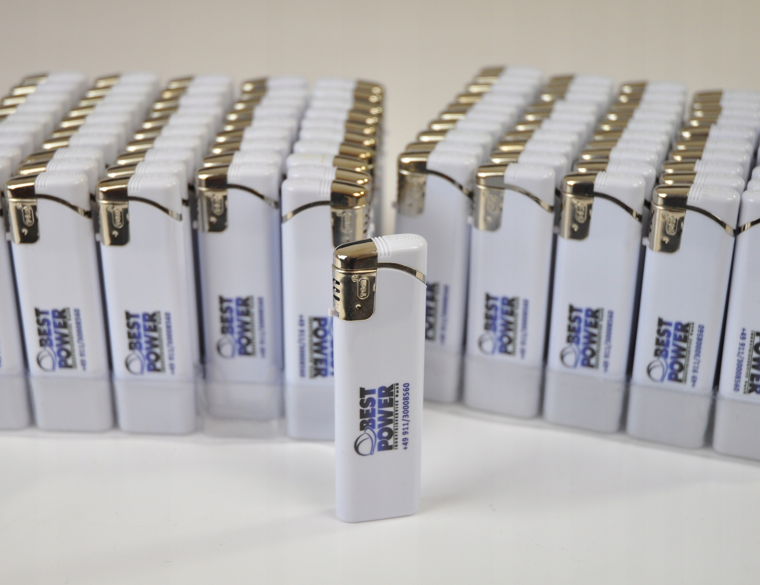 Пластиковые пьезоэлектрические зажигалки, белые, с односторонней печатью, выполненной по инновационной технологии УФ-печати - полноцветная CMYK. b>