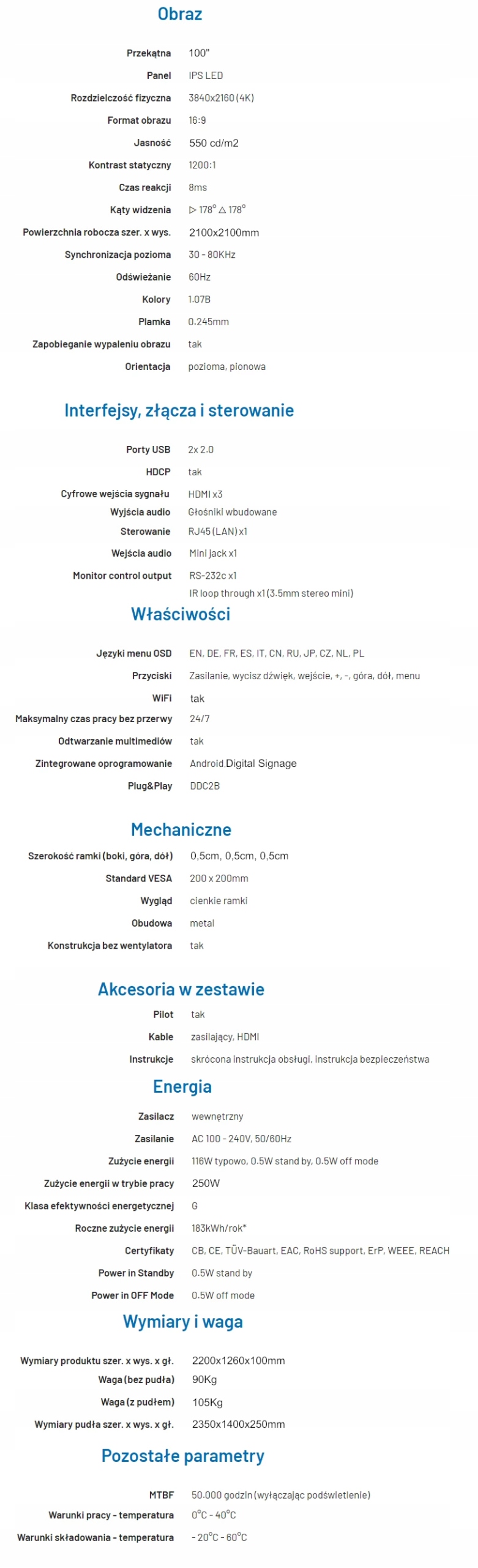РЕКЛАМНИЙ МОНІТОР 100" 4K 3840X2160