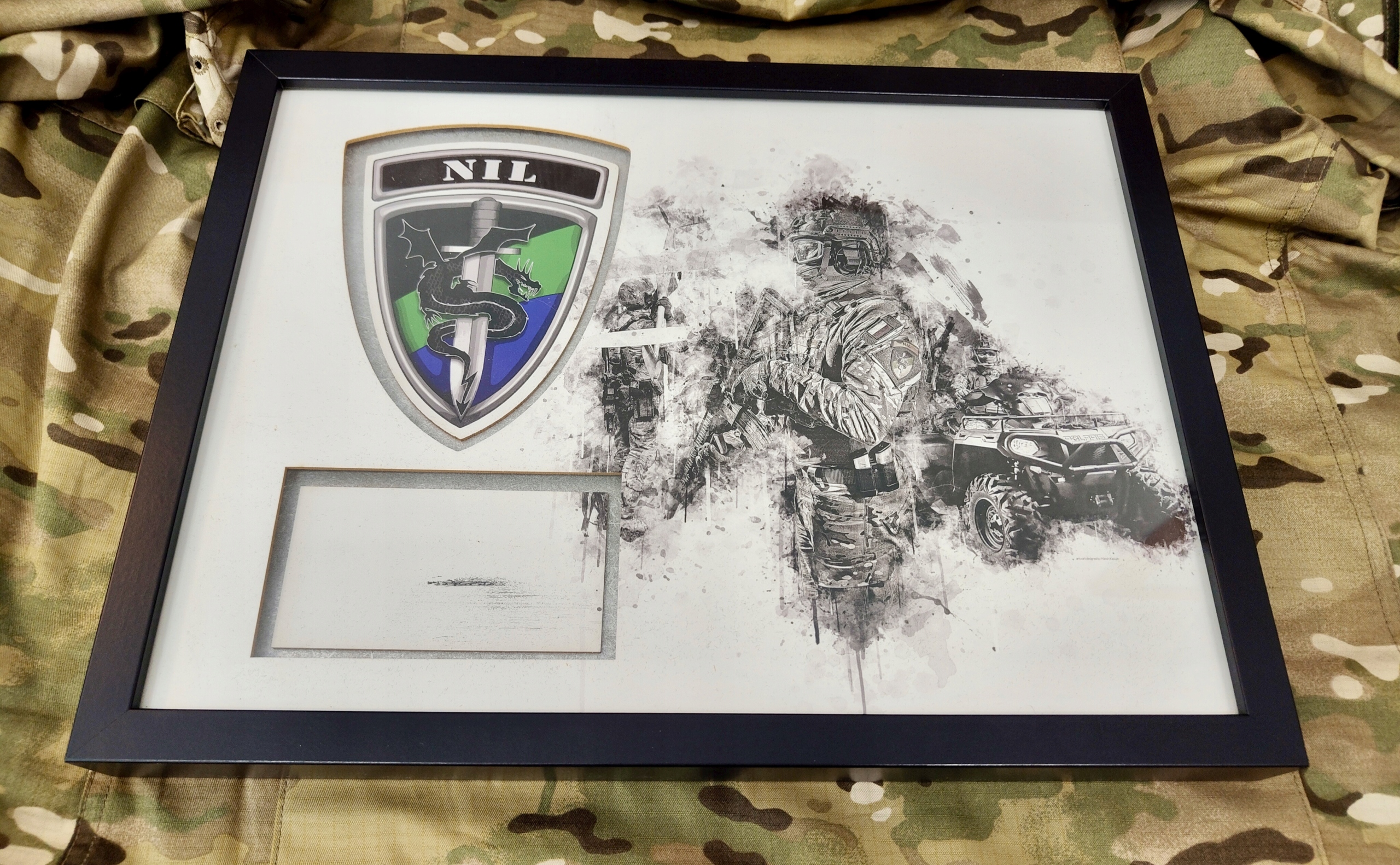 1. Мемориальная доска размером 43 см х 33 см с изображением оператора воинской части НИЛ, которая будет отмечена посвящением командира части победителю аукциона.