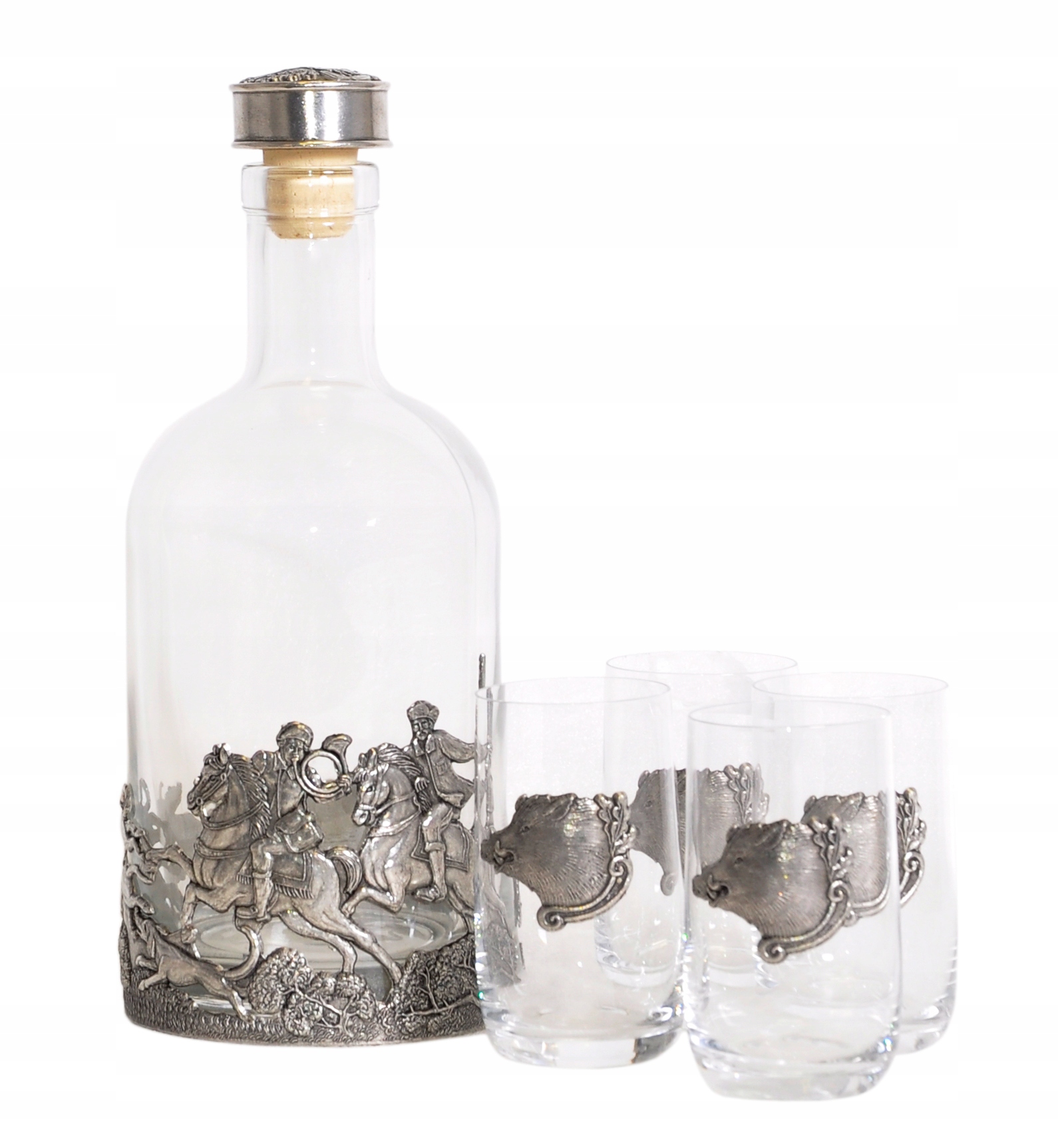 Алкогольный набор, состоящий из бутылки-графина и 4 стаканов