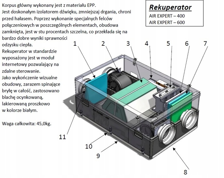 Рекуператор AIR EXPERT 600 — комплектное вентиляционное устройство с горизонтальным расположением патрубков, используемое для вентиляции частных домов или коммерческих объектов. Производительность до 680м3/ч.