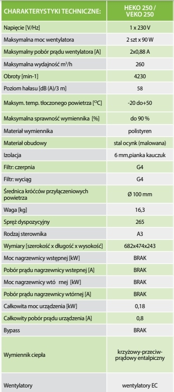Rekuperator CENTRALA WENTYLACYJNA Veko 250B POLSKA