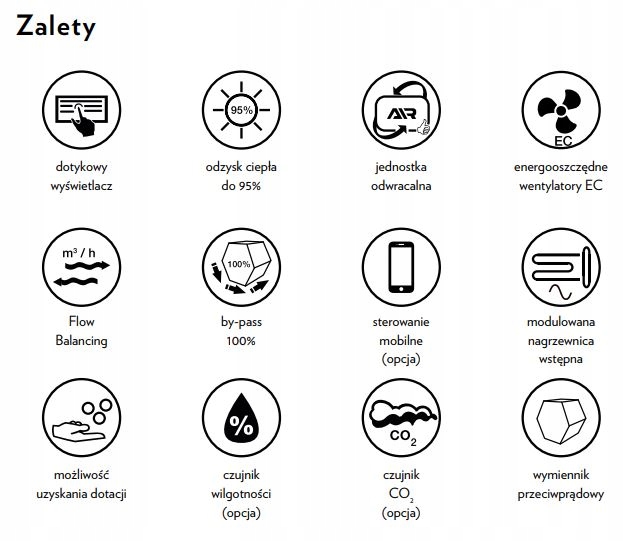 - Эффективность рекуперации тепла PN-EN 308: 87%