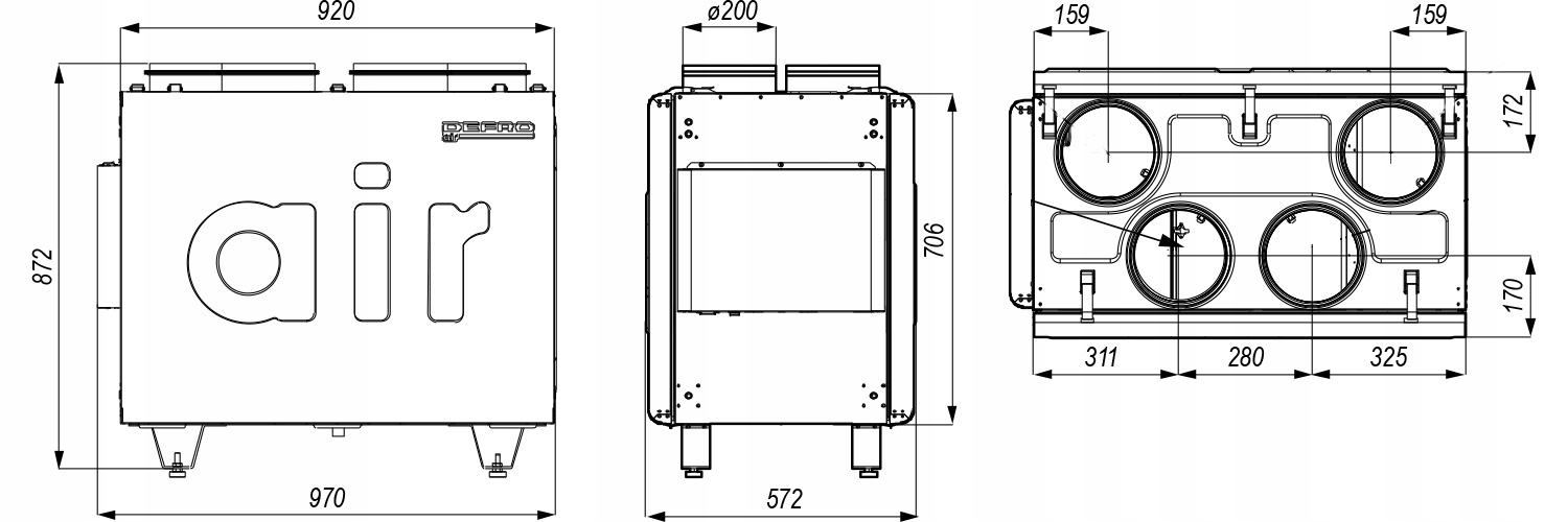 - Диаметр вентиляционного канала: 200 мм.
