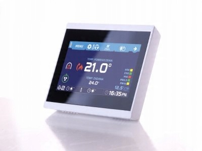 представляет собой комнатную панель, совместимую с регуляторами COMPIT. Вы можете установить желаемую температуру комфорта, температуру эко и температуру в программе ВНЕ ДОМА (ОТПУСК). Переключение между комфортной температурой, эко-температурой и зоной ВНЕ ДОМА осуществляется автоматически по запрограммированному ежедневному и еженедельному графику. Дополнительно термостат имеет график отпусков и ручной режим работы.