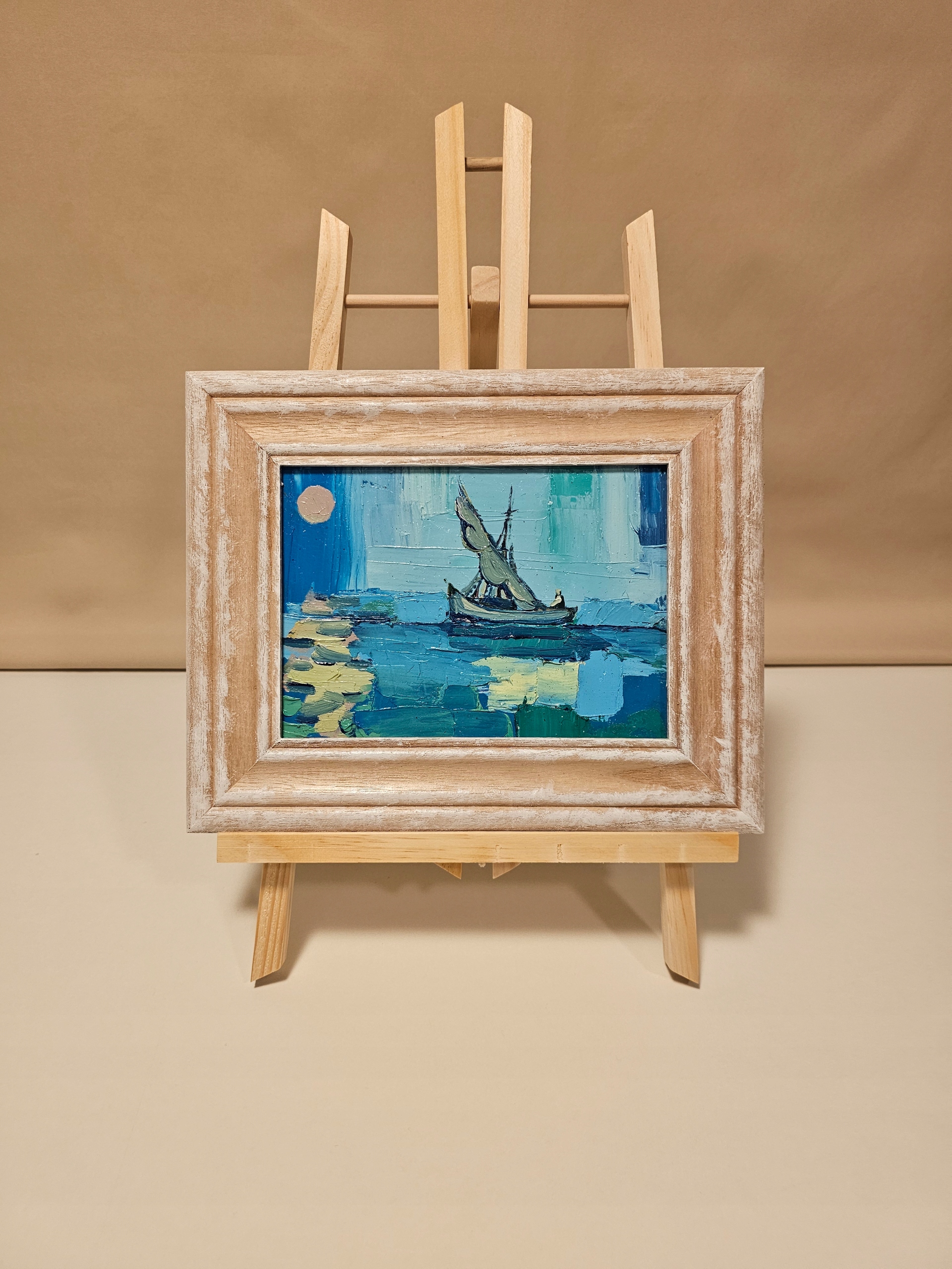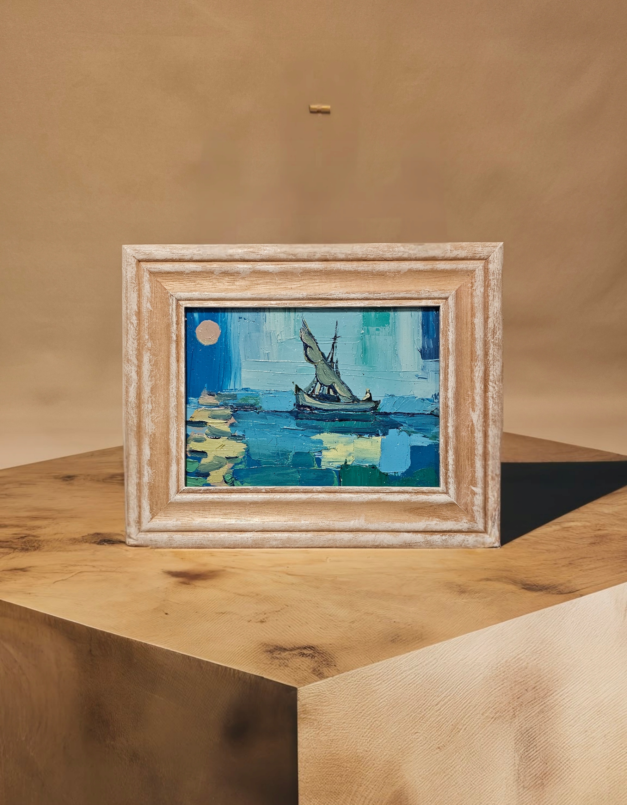 . Атмосфера мира и романтизма. В центре композиции есть лодка, мягко качающаяся на спокойной поверхности воды. Человек сидит в Лодзи, слушая величие природы и магию, окружающую мир. Деликатные оттенки синего, зеленого и желтого создают гармонию и мир, добавляя ноту романтических сновидений. Широкие мазки придают изображению текстуру и глубину, укрепляя чувство мира. Это произведение искусства вводит в дом атмосферу психической гармонии, тепла и нежности, наполняя пространство светом и романтизмом.