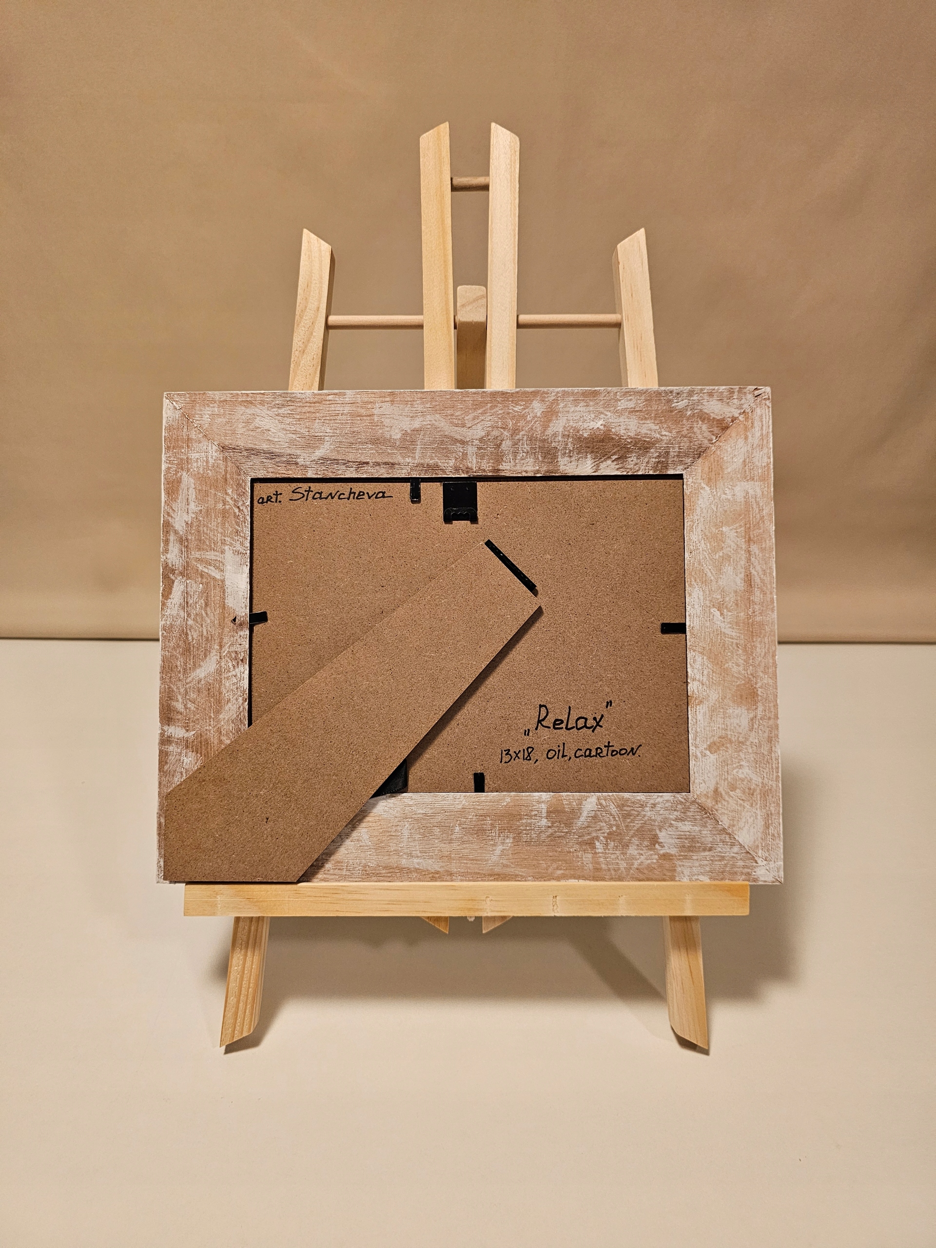 Картинка «Расслабься», В. Станчева, масло, картон, 18 см х 13 см.