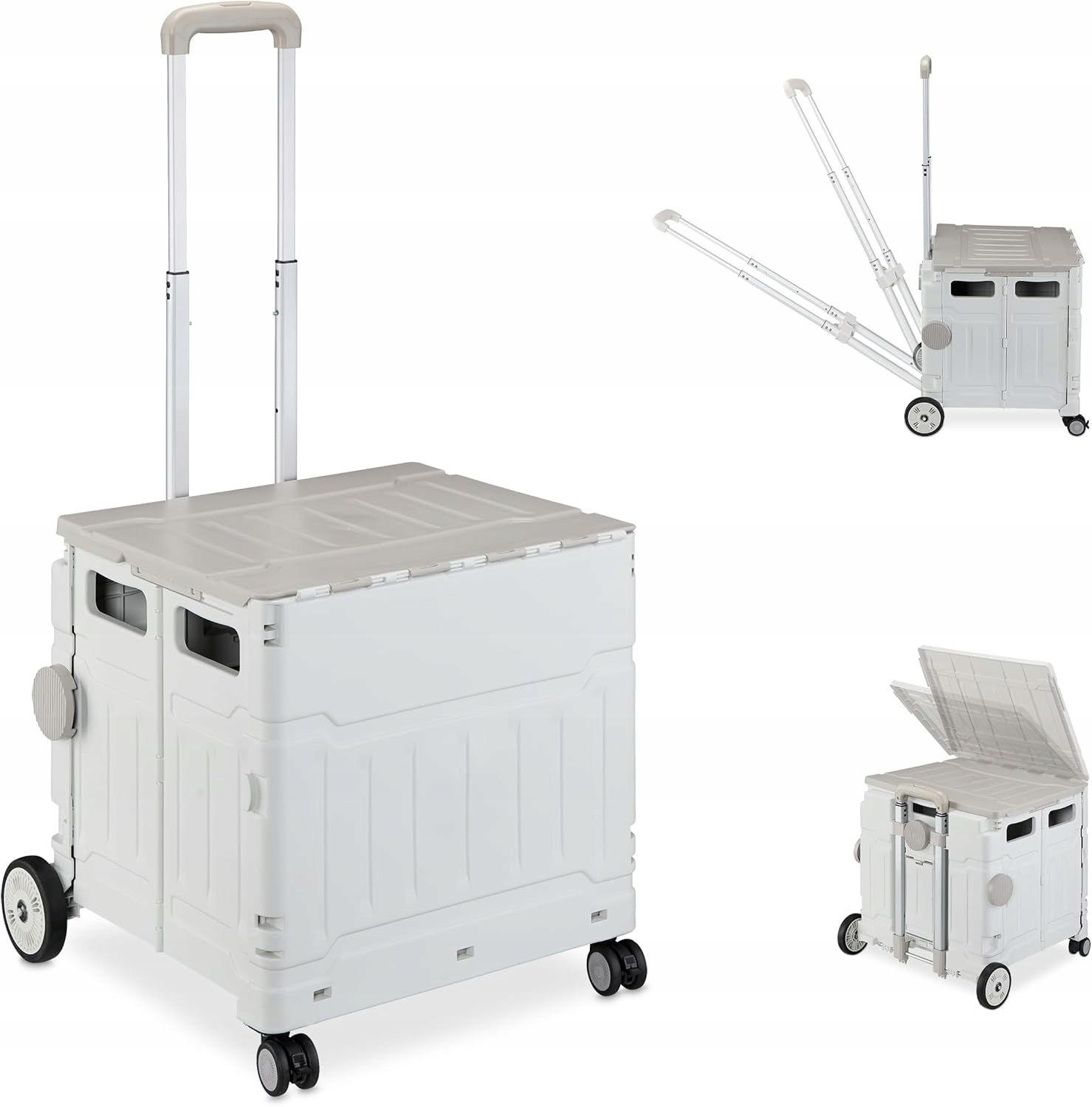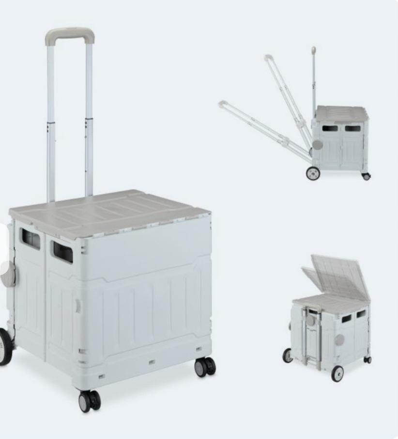 Расслабься Дня покупок, складывание, корзина для покупок с роликовыми коньками, покрытие и наклонный телескопический держатель, до 50 кг, серый/ белый h1> Производитель: Relectdays h2>