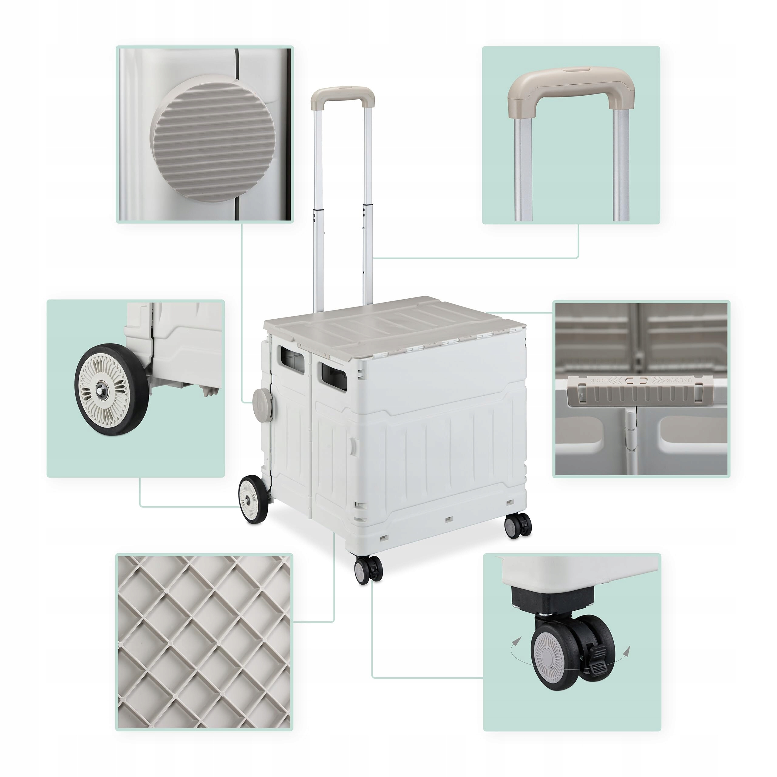 - Тролляж покупок, складывание, корзина для покупок, обложка и телескопический держатель, до 50 кг, серый/белый