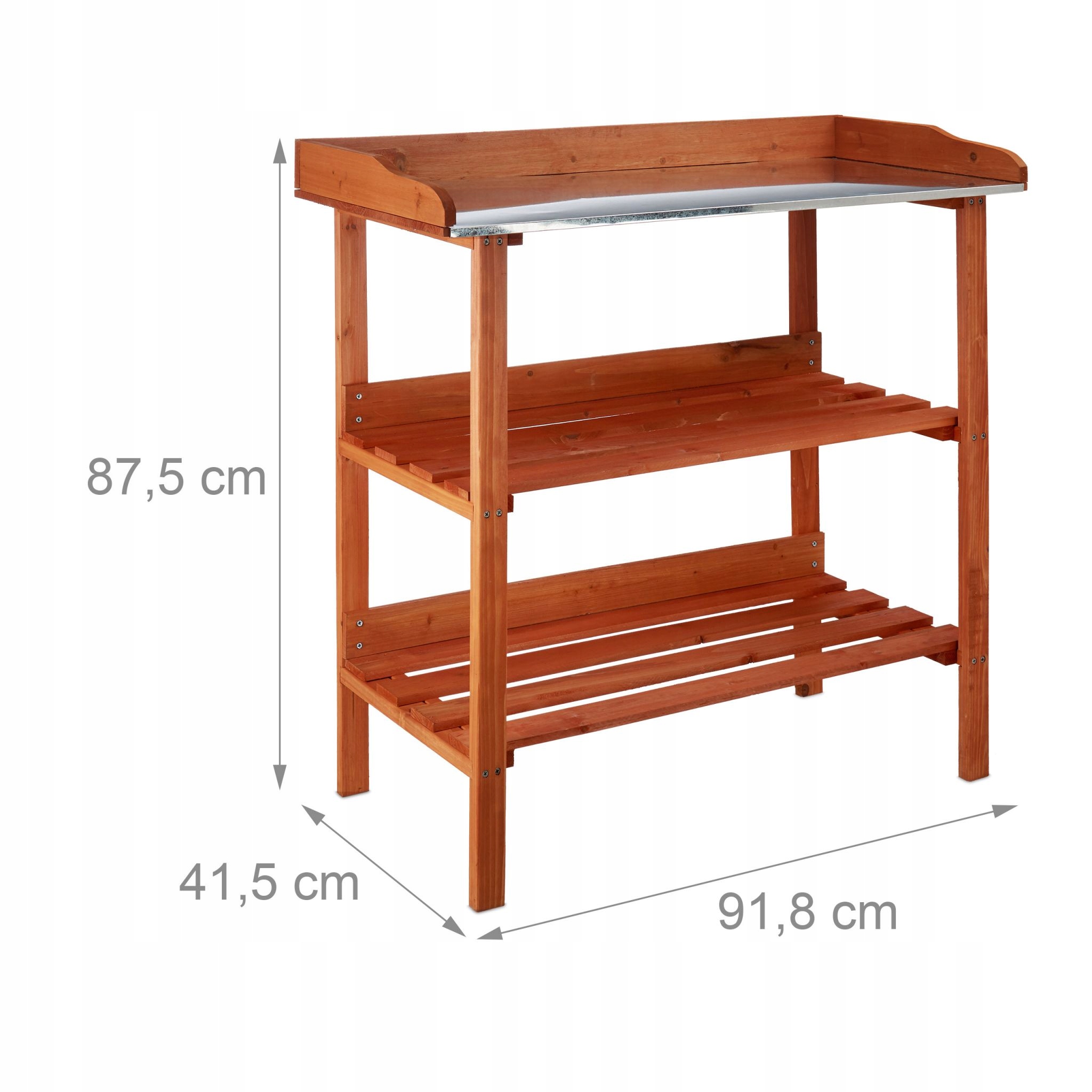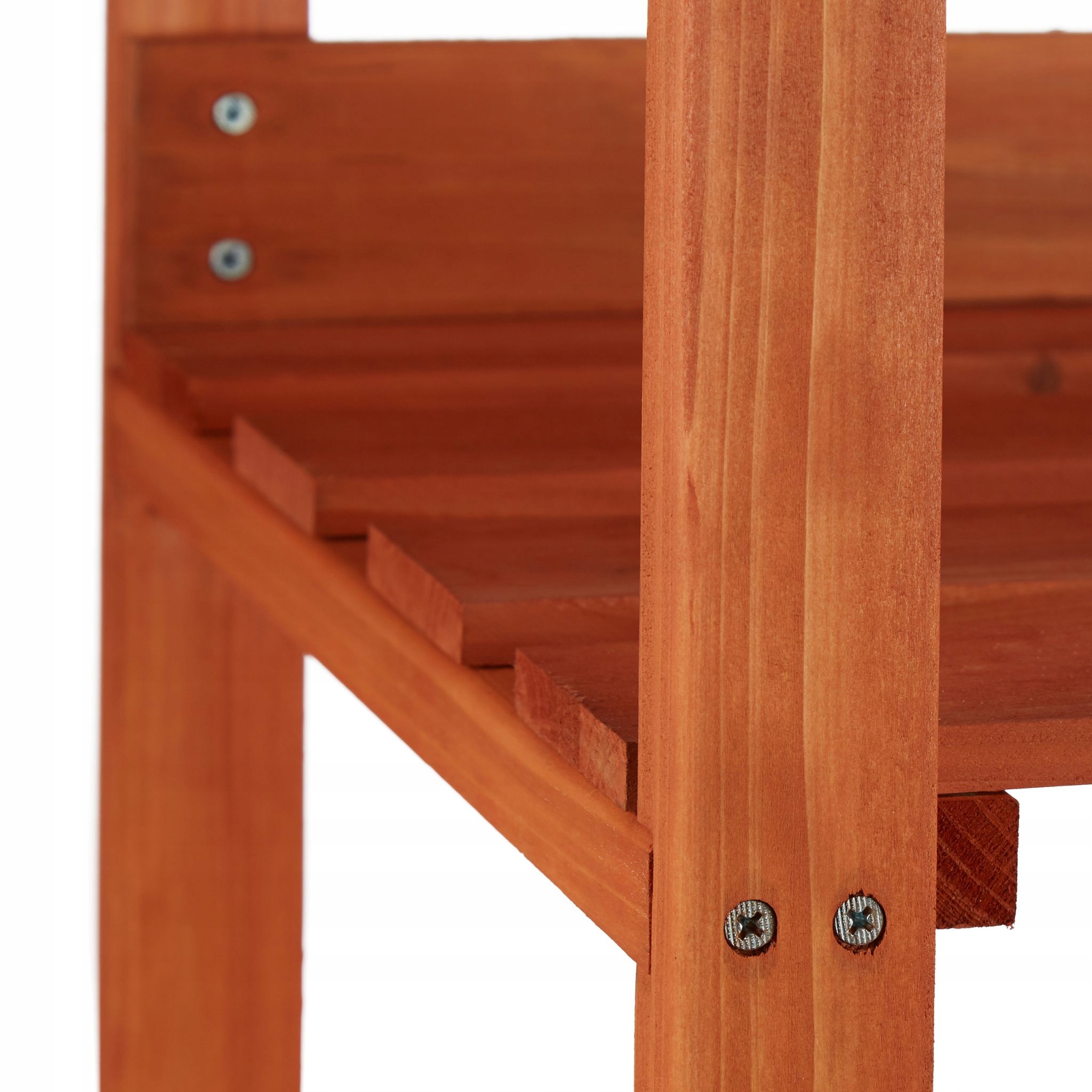 Наш деревянный трехуровневый стол обеспечит вам комфорт во время работы в саду. С нашим рабочим столом вам не придется приседать при посадке и пересадке растений, а работать можно сидя или стоя. Столешница изготовлена из оцинкованной стали, которую очень легко мыть. Наш стол для выращивания растений оснащен полками для хранения садовых инструментов и аксессуаров. Этот стол для рассады можно использовать как декоративную полку в теплице или саду благодаря его красивому оранжевому цвету.
