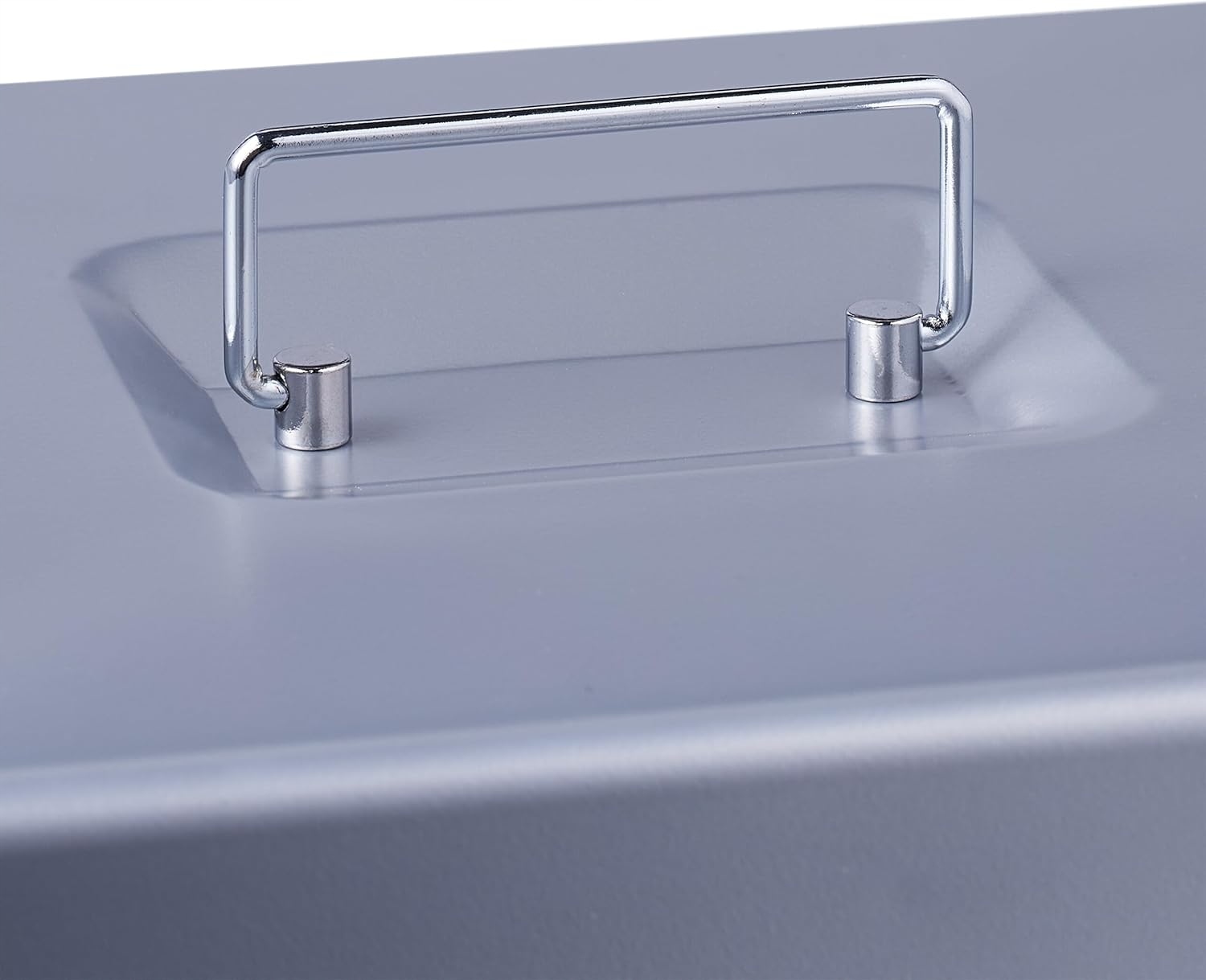 Кассовый ящик Relaxdays представляет собой прочный металлический ящик с трехзначным кодовым замком, который идеально подходит для дома, ярмарок, блошиных рынков, школьных мероприятий или офисов. Внутри имеется съемный вкладыш для монет, который облегчает быструю сортировку монет. В нижнем пространстве разместятся банкноты, документы, квитанции и другие мелкие предметы.