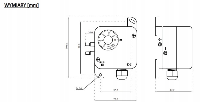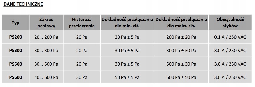 Реле диференціального тиску PS600 40-600 Па для вентиляції
