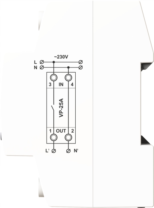 Реле напряжения VP-25A G3W предназначено для защиты электрических устройств и бытовой техники от недопустимых колебаний напряжения. Устройство непрерывно анализирует напряжение сети и при его превышении отключаются подключенные устройства, а нагрузка включается автоматически при возвращении напряжения в заданный диапазон. Пользователь задает необходимые верхний и нижний пределы напряжения и время задержки включения.