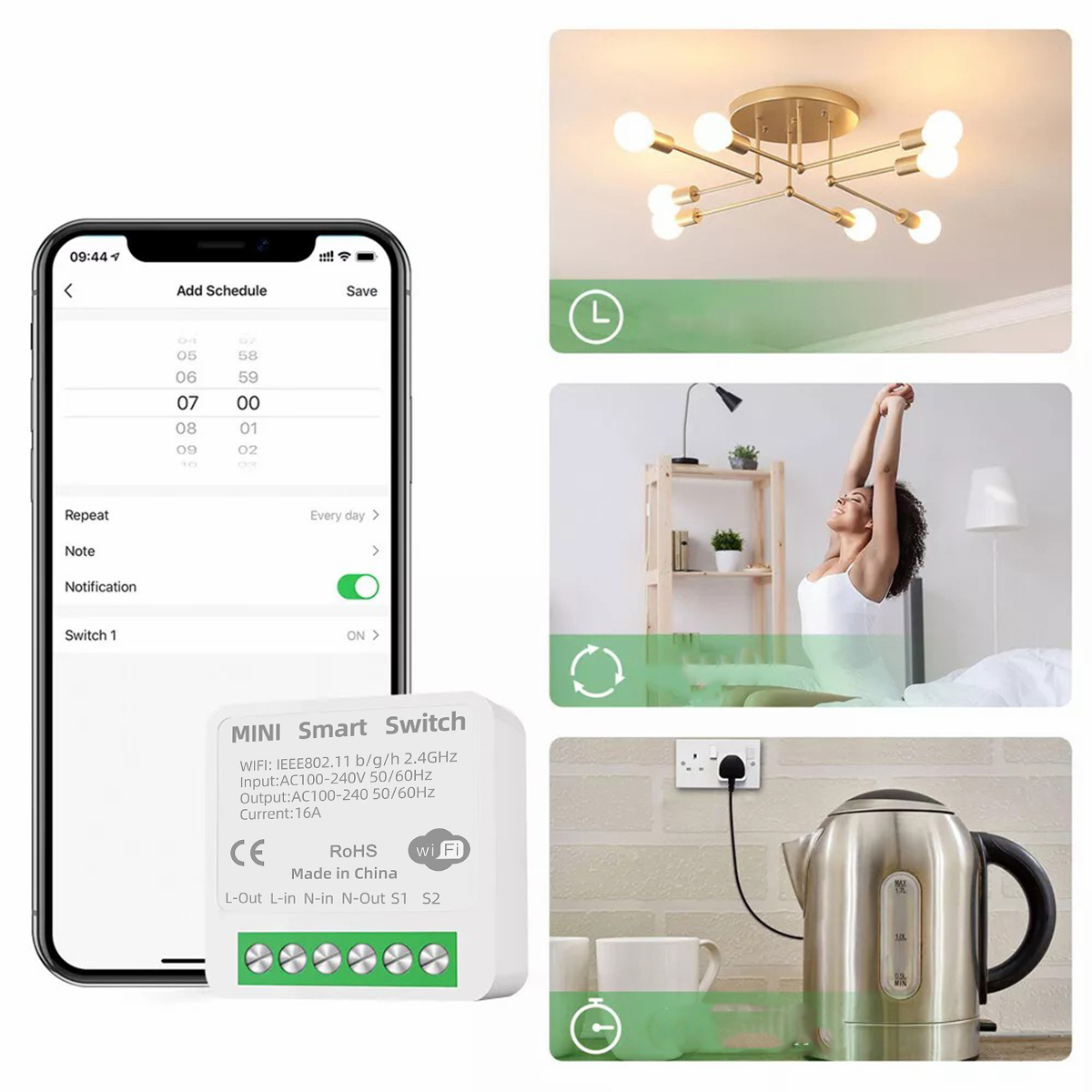 Мини-выключатель освещения WLAN+Bluetooth Smart для скрытого монтажа Релейный модуль Совместим с Amazon Alexa, Google Home, Smart Life/Tuya APP